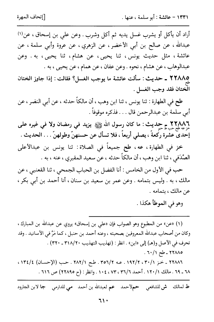 -[611]- رواه أحمد: ثنا عبد الرحمن، ثنا مالك، به. وعن إسحاق بن عيسى سلمة، كلاهما عن مالك، نحوه.