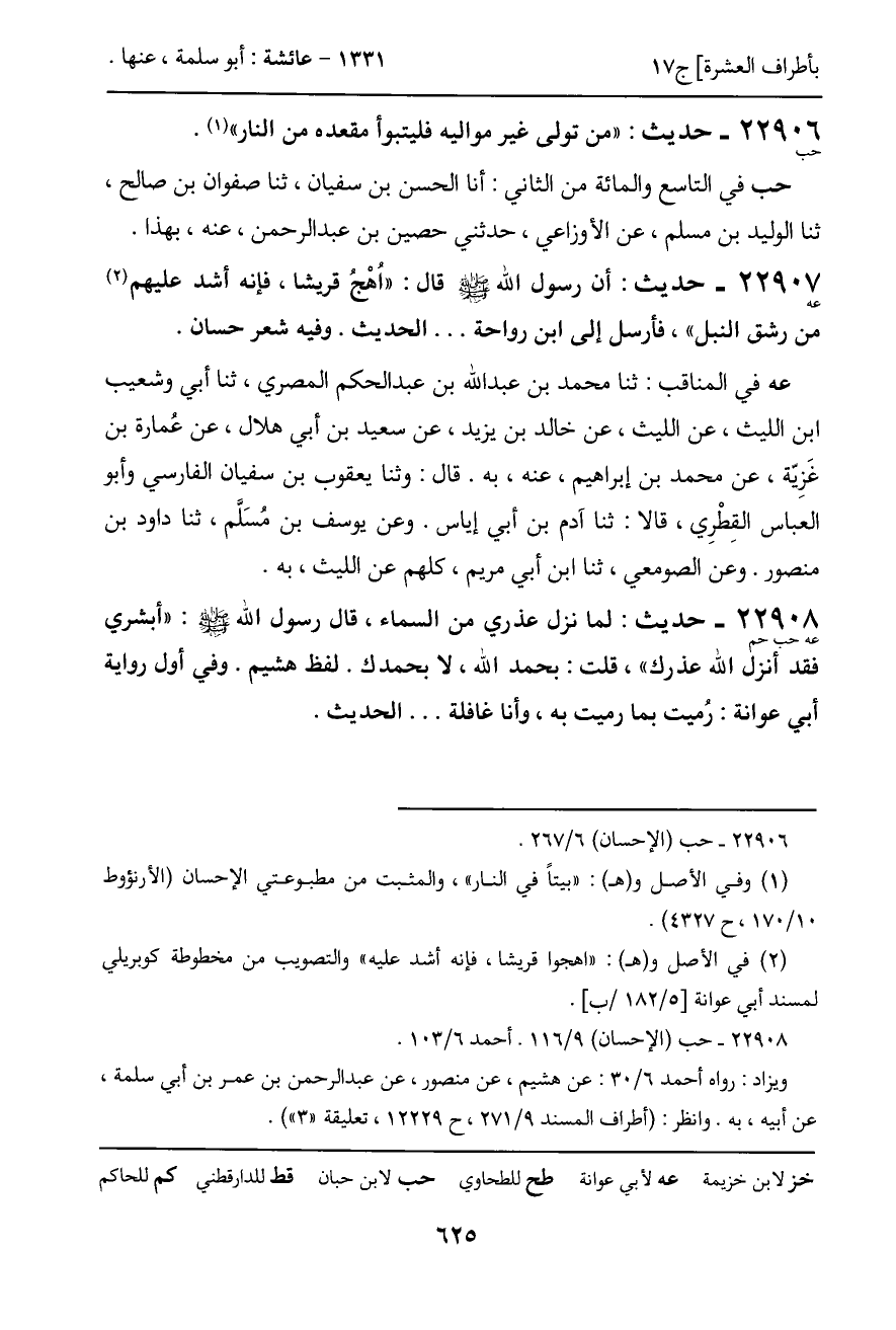 22906 - حديث (حب) : "من تولى غير مواليه فليتبوأ مقعده من النار".