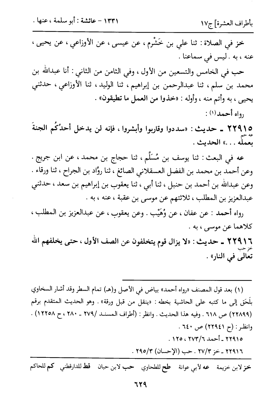 22916 - حديث (خز حب) : "لا يزال قوم يتخلفون عن الصف الأول، حتى يخلفهم الله تعالى في النار".