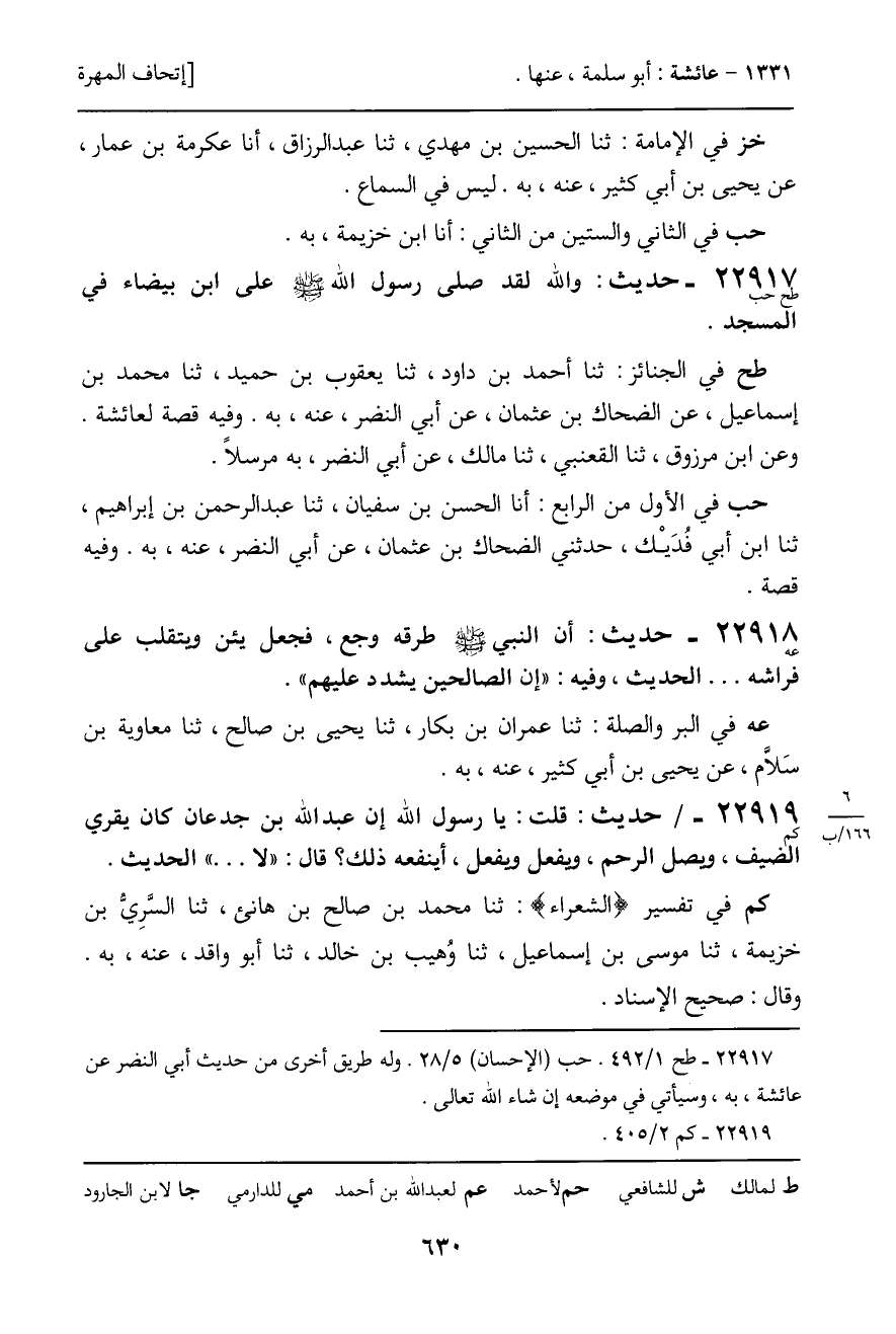 22917 - حديث (طح حب) : والله لقد صلى رسول الله - صَلَّى اللَّهُ عَلَيْهِ وَسَلَّمَ - على ابن بيضاء في المسجد.