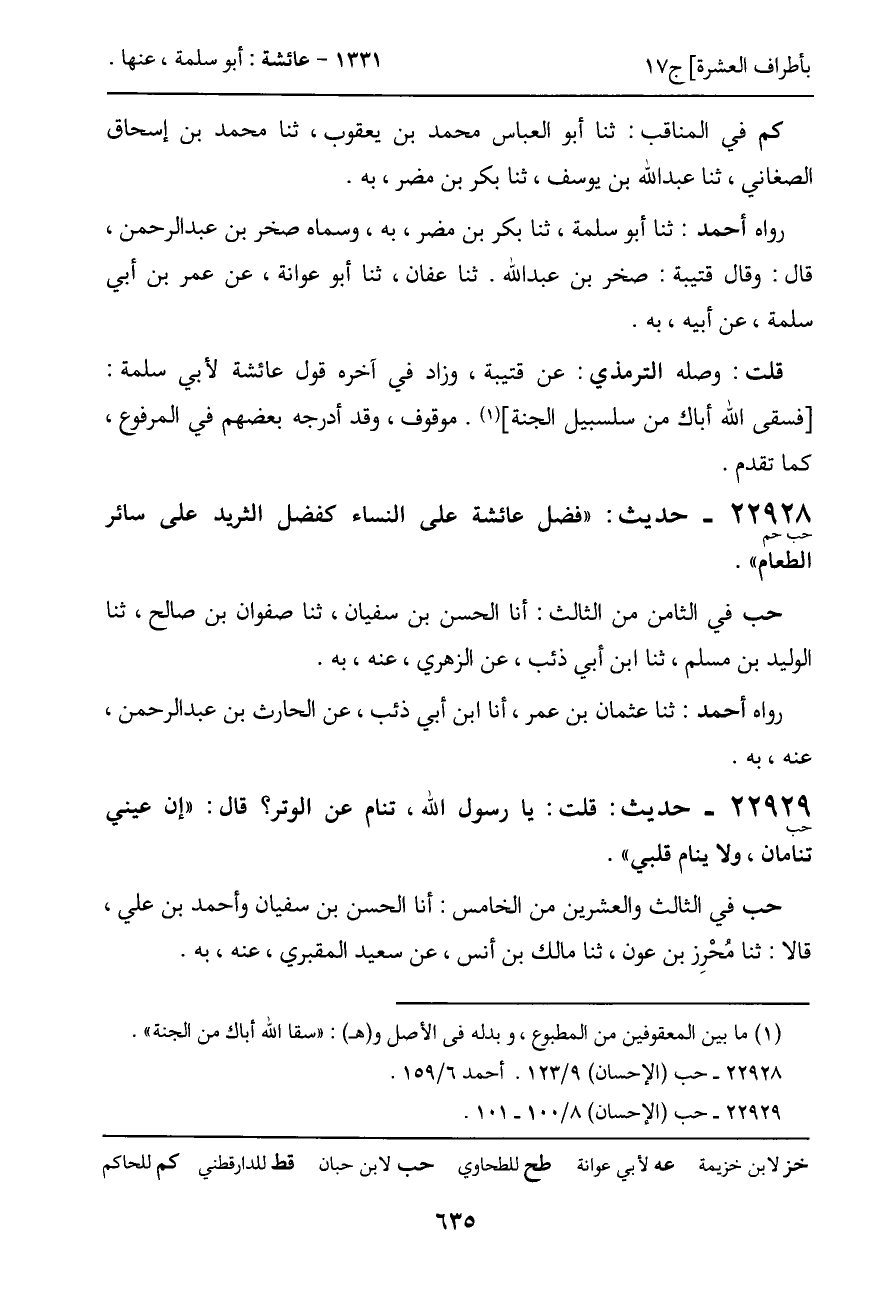 22928 - حديث (حب حم) : "فضل عائشة على النساء كفضل الثريد على سائر الطعام".