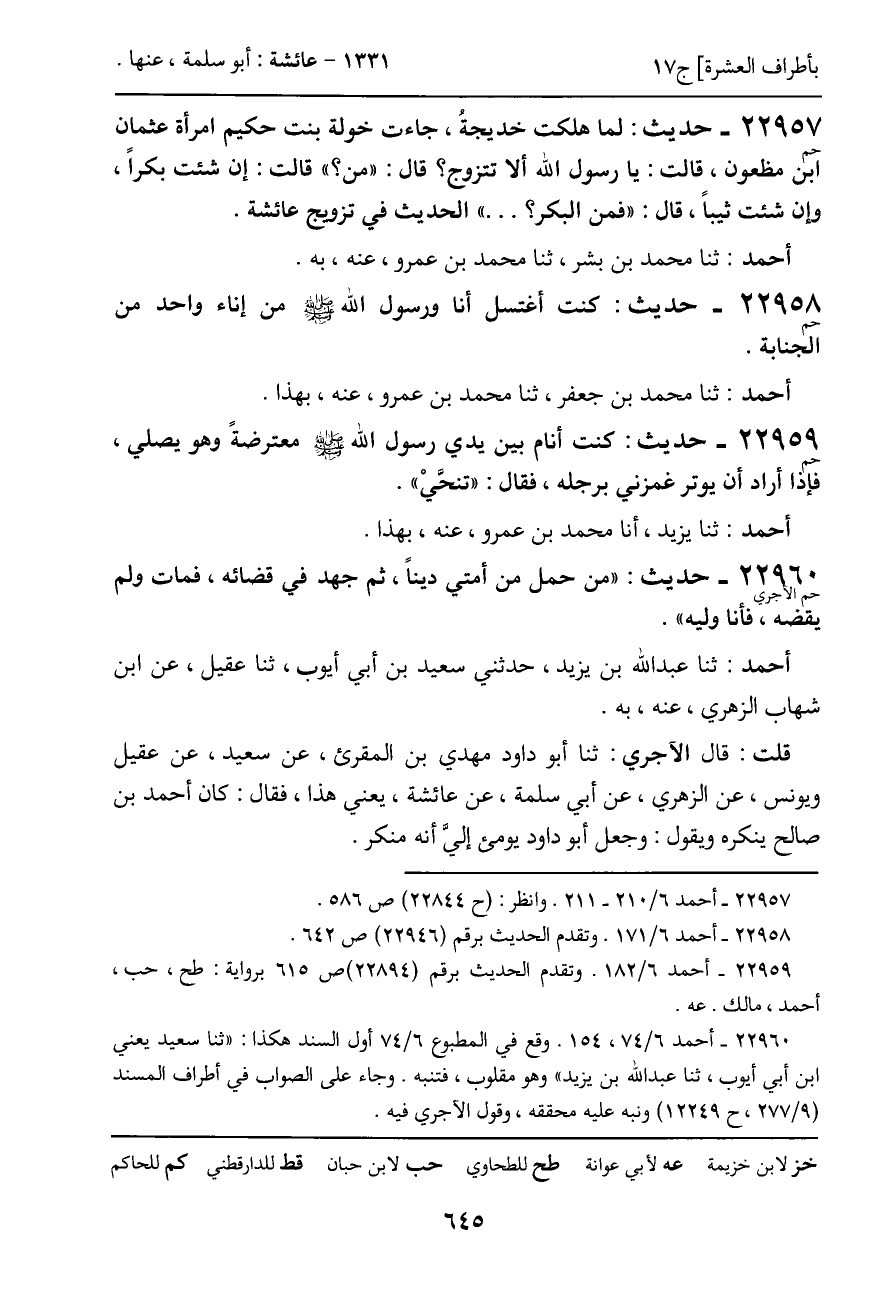 22958 - حديث (حم) : كنت أغتسل أنا ورسول الله - صَلَّى اللَّهُ عَلَيْهِ وَسَلَّمَ - من إناء واحد من الجنابة.