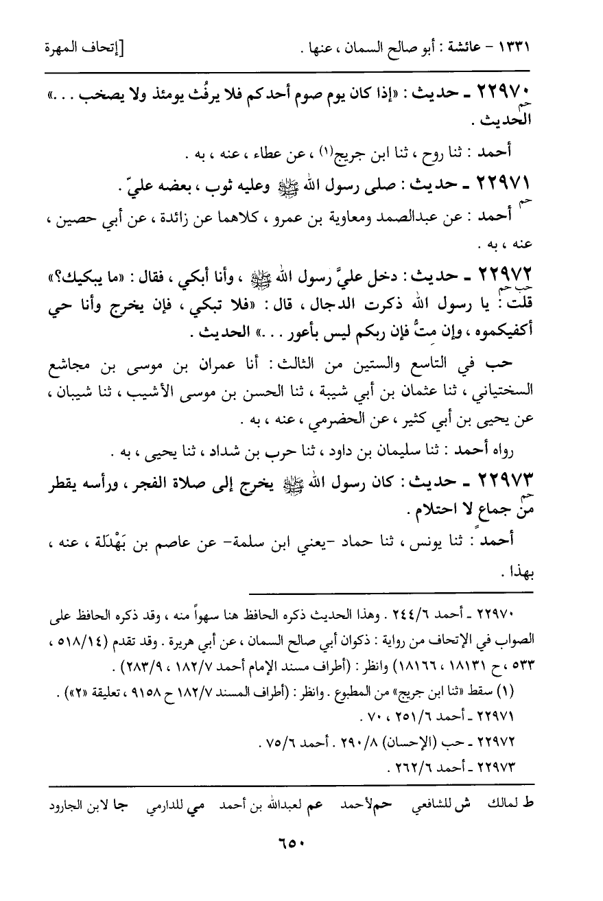 22973 - حديث (حم) : كان رسول الله - صَلَّى اللَّهُ عَلَيْهِ وَسَلَّمَ - يخرج إلى صلاة الفجر، ورأسه يقطر من جماع لا احتلام.