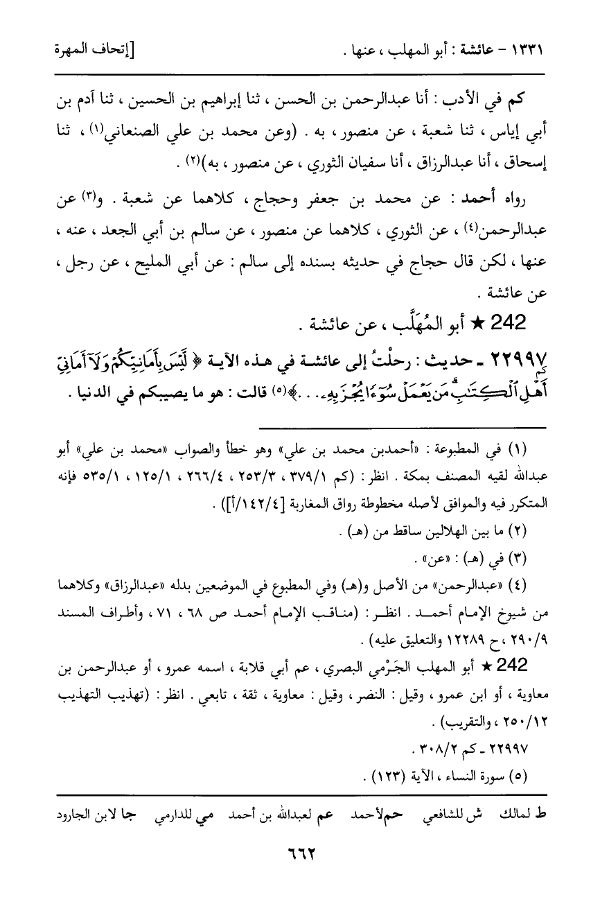 -[663]- كم في تفسير النساء: ثنا أبو عبد الله الزاهد الأصبهاني, ثنا إسماعيل بن إسحاق، ثنا سليمان بن حرب، ثنا حماد بن زيد، عن الحجاج الصواف، عن أيوب، عن أبي قلابة، عنه، بهذا.