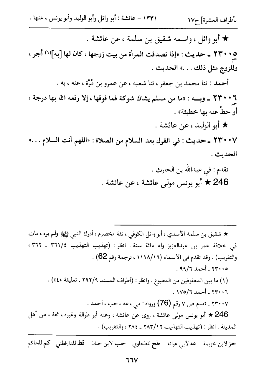 ـ أبو وائل، واسمه شقيق بن سلمة، عن عائشة.