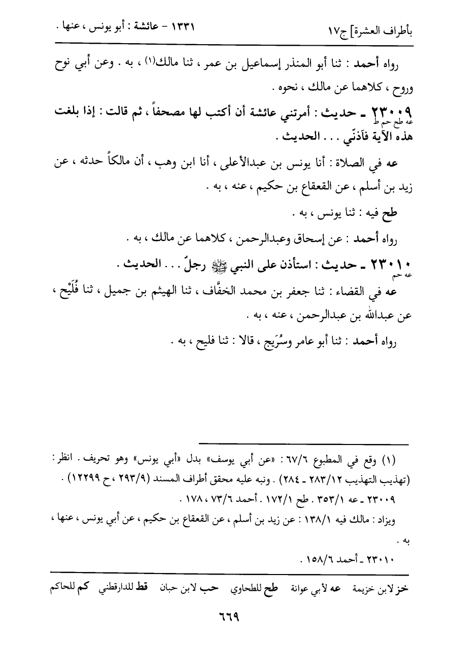23009 - حديث (عه طح حم ط) : أمرتني عائشة أن أكتب لها مصحفاً، ثم قالت: إذا بلغت هذه الآية فآذنّي ... الحديث.