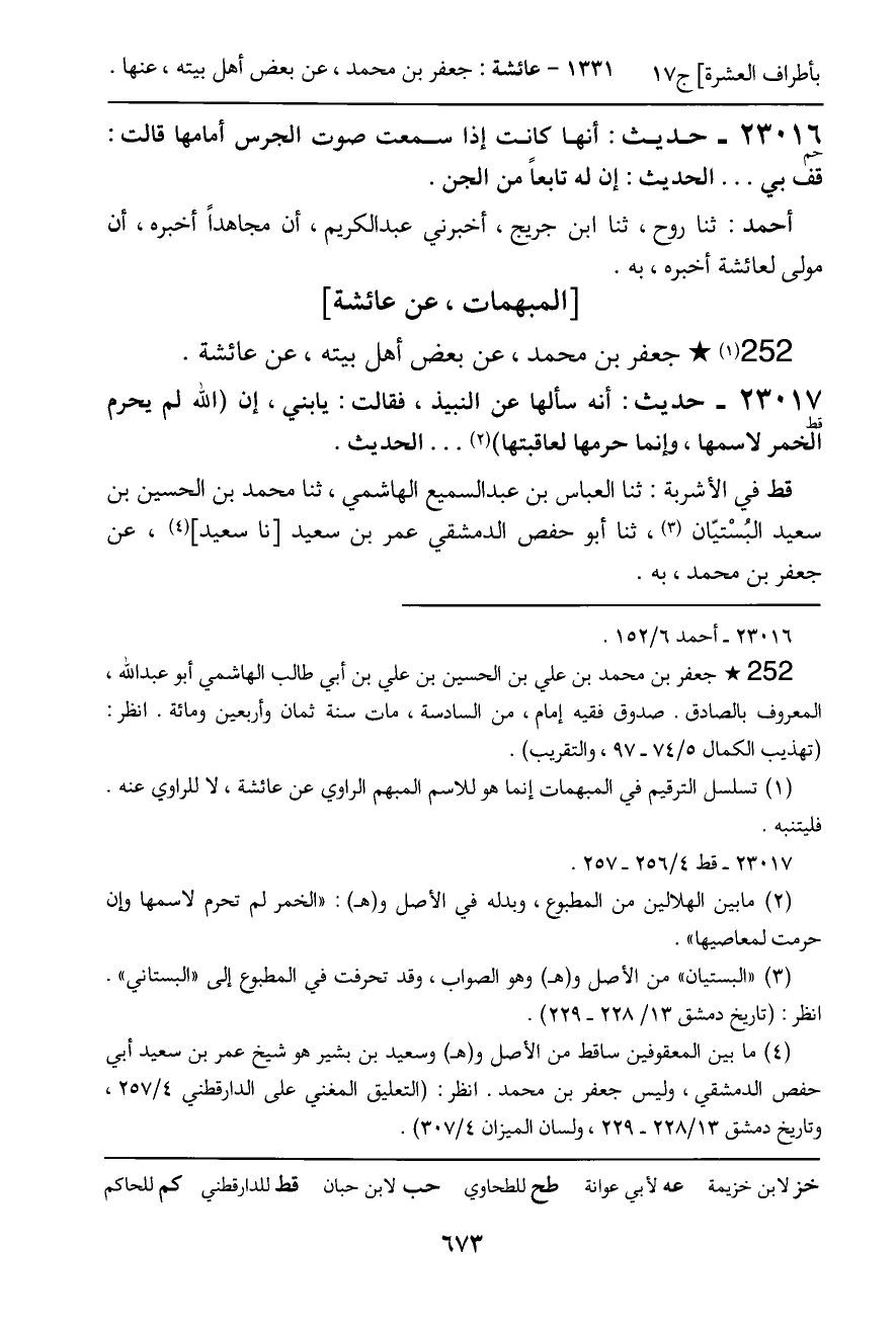 ـ جعفر بن محمد، عن بعض أهل بيته، عن عائشة.