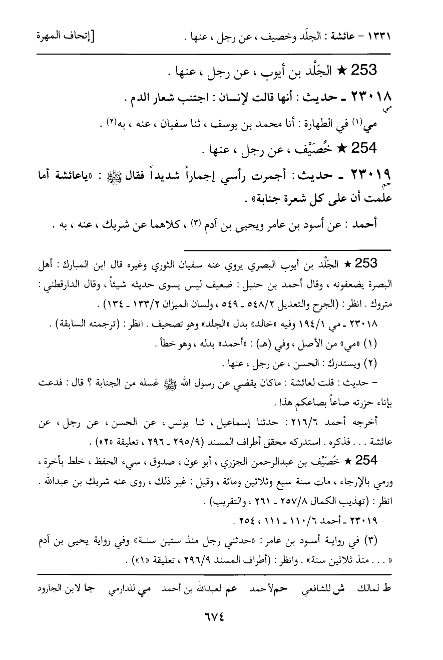 23019 - حديث (حم) : أجمرت رأسي إجماراً شديداً فقال - صَلَّى اللَّهُ عَلَيْهِ وَسَلَّمَ -: "ياعائشة أما علمت أن على كل شعرة جنابة".