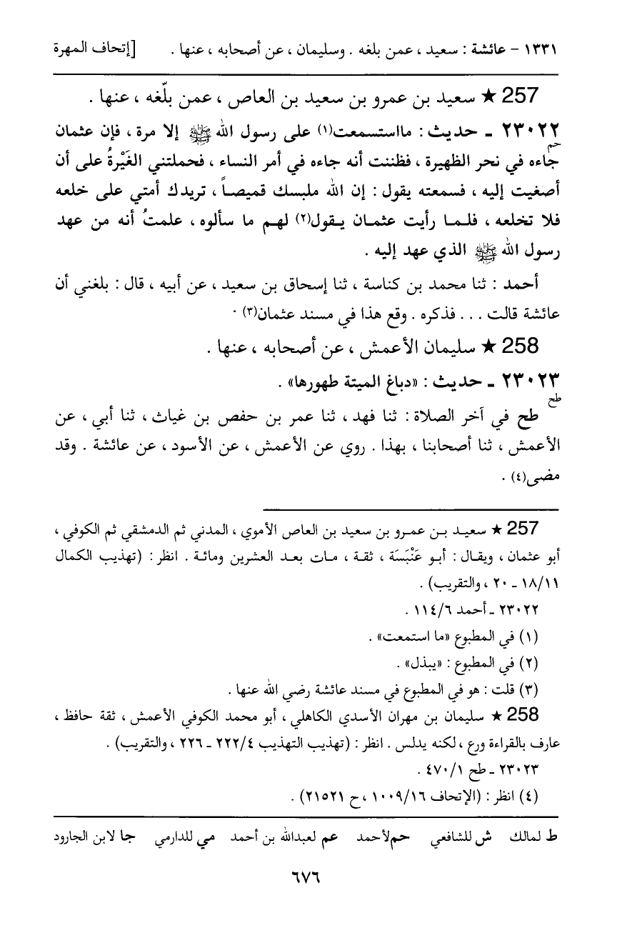 أحمد: ثنا محمد بن كناسة، ثنا إسحاق بن سعيد، عن أبيه، قال: بلغني أن عائشة قالت ... فذكره. وقع هذا في مسند عثمان.