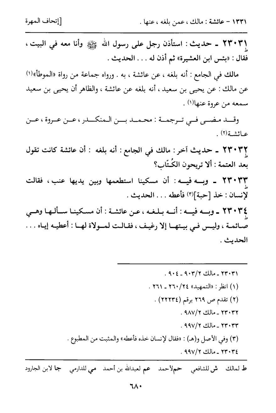 23031 - حديث (ط) : استأذن رجل على رسول الله - صَلَّى اللَّهُ عَلَيْهِ وَسَلَّمَ - وأنا معه في البيت، فقال: "بئس ابن العشيرة" ثم أذن له ... الحديث.