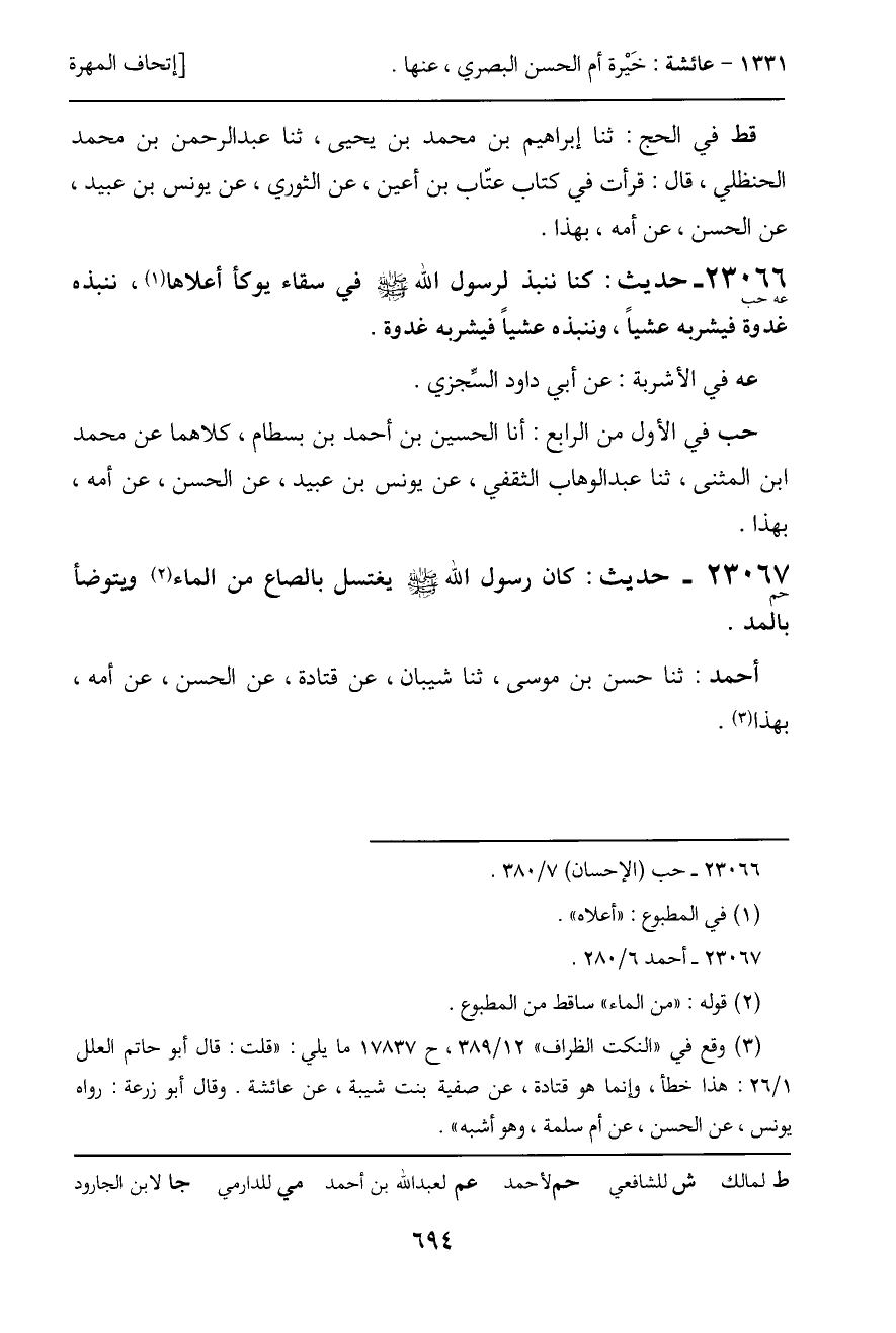 حب في الأول من الرابع: أنا الحسين بن أحمد بن بسطام، كلاهما عن محمد ابن المثنى، ثنا عبد الوهاب الثقفي، عن يونس بن عبيد، عن الحسن، عن أمه، بهذا.