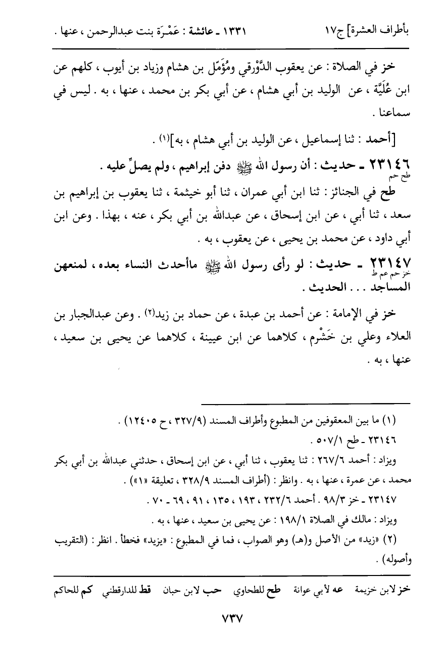 خز في الإمامة: عن أحمد بن عبدة، عن حماد بن زيد. وعن عبد الجبار بن العلاء وعلي بن خَشْرم، كلاهما عن ابن عيينة، كلاهما عن يحيى بن سعيد، عنها، به.
