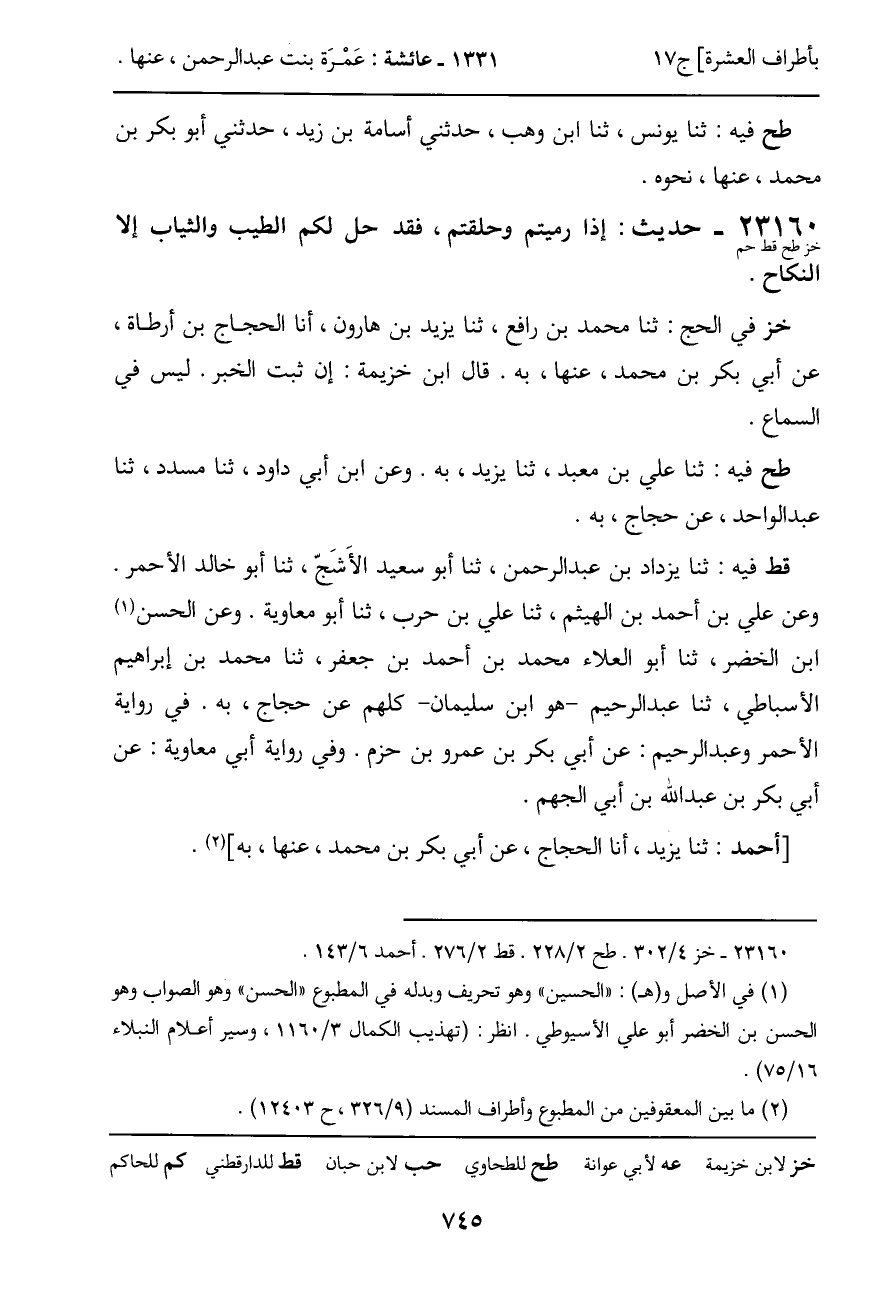 طح فيه: ثنا علي بن معبد، ثنا يزيد، به. وعن ابن أبي داود، ثنا مسدد، ثنا عبد الواحد، عن حجاج، به.