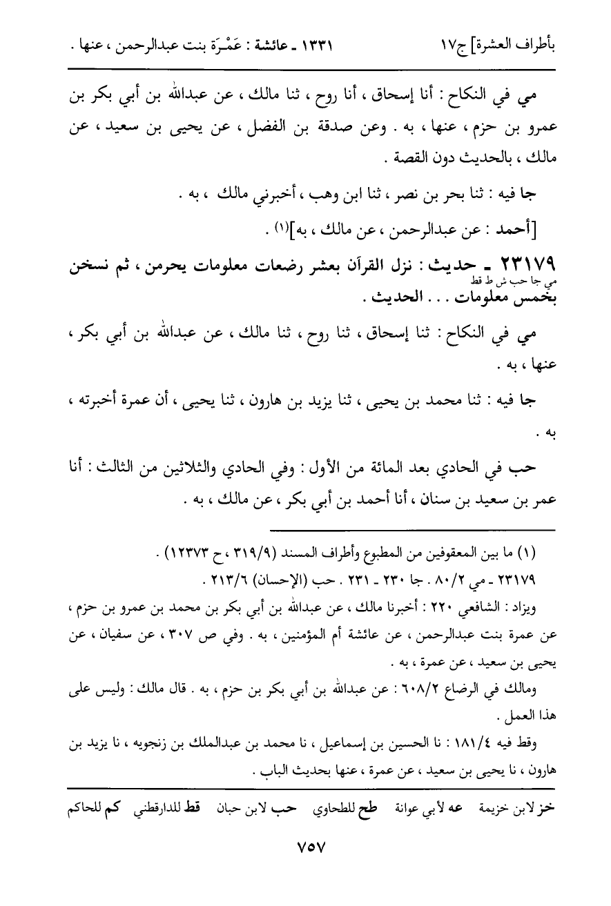 23179 - حديث (مي جا حب ش ط قط) : نزل القرآن بعشر رضعات معلومات يحرمن، ثم نسخن بخمس معلومات ... الحديث.