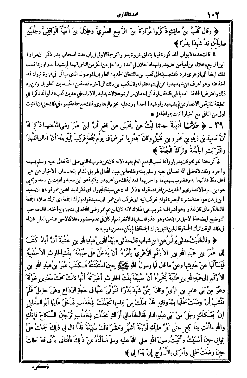 3990 - حدَّثنا قُتَيْبَةُ حدَّثنا لَ يْثٌ عنْ يَحْيَى عنْ نافِعٍ أنَّ ابنَ عُمَرَ رَضِي الله تَعَالَى عنهُما ذُكِرَ لَهُ أنَّ سَعِيدَ بنَ زَيْدِ بنِ عَمْرِو بنِ نُفَيْلٍ وكانَ بَدْرِياً مَرِضَ فِي يَوْمِ جُمُعَةٍ فرَكِبَ إلَيْهِ بعْدَ أنْ تَعَالَى النَّهَارُ واقْتَرَبَتِ الجُمُعَةُ وتَرَكَ الْجُمُعَةَ.