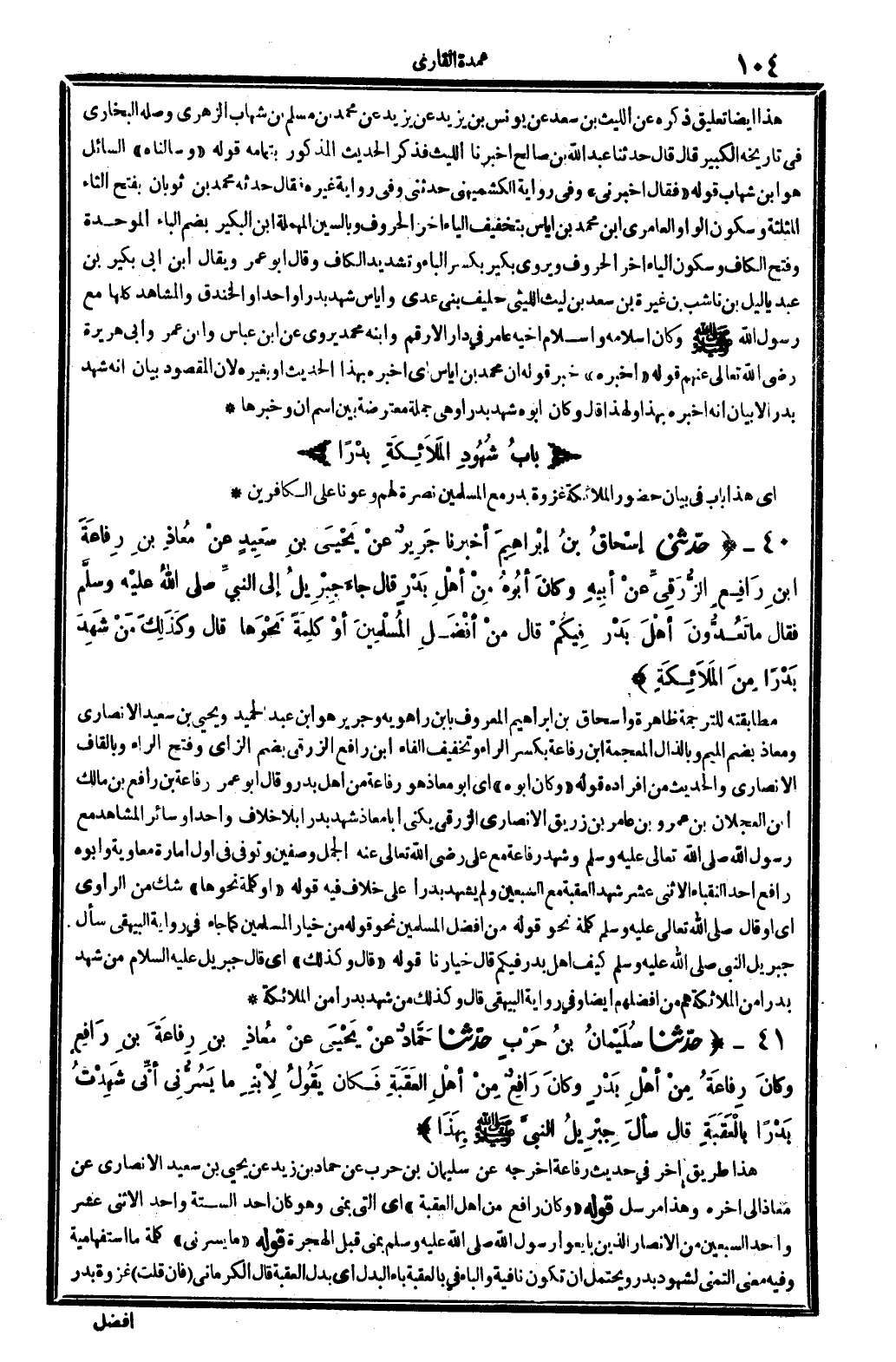 قَوْله: (وَكَانَ أَبوهُ) ، أَي: أَبُو معَاذ هُوَ رِفَاعَة من أهل بدر، وَقَالَ أَبُو عمر: رِفَاعَة بن رَافع بن مَالك ابْن العجلان بن عَمْرو بن عَامر بن زُرَيْق الْأنْصَارِيّ الزرقي، يكنى أَبَا معَاذ، شهد بَدْرًا بِلَا خلاف وأحداً وَسَائِر الْمشَاهد مَعَ رَسُول الله، صلى الله عَلَيْهِ وَسلم، وَشهد رِفَاعَة مَعَ عَليّ، رَضِي الله تَعَالَى عَنهُ، الْجمل وصفين وَتُوفِّي فِي أول إِمَارَة مُعَاوِيَة وَأَبوهُ رَافع أحد النُّقَبَاء الإثني عشر، شهد الْعقبَة مَعَ السّبْعين وَلم يشْهد بَدْرًا على خلاف فِيهِ. قَوْله: (أَو كلمة نَحْوهَا) ، شكّ من الرَّاوِي أَي: أَو قَالَ صلى الله عَلَيْهِ وَسلم، كلمة نَحْو. قَوْله: (من أفضل الْمُسلمين) نَحْو قَوْله: من خِيَار الْمُسلمين، كَمَا جَاءَ فِي رِوَايَة الْبَيْهَقِيّ، سَأَلَ جِبْرِيل النَّبِي صلى الله عَلَيْهِ وَسلم: كَيفَ أهل بدر فِيكُم؟ قَالَ: خيارنا. قَوْله: (قَالَ: وَكَذَلِكَ) أَي: قَالَ جِبْرِيل، عَلَيْهِ السَّلَام: من شهد بَدْرًا من الْمَلَائِكَة هم من أفضلهم أَيْضا، وَفِي رِوَايَة الْبَيْهَقِيّ: (قَالَ: وَكَذَلِكَ من شهد بَدْرًا من الْمَلَائِكَة) .