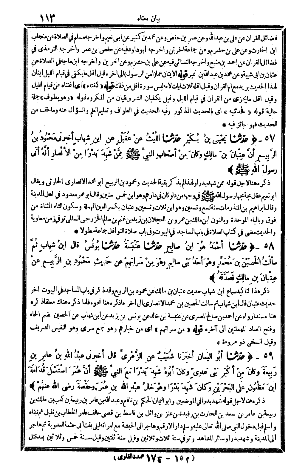 ذكره هُنَا لأجل قَوْله: (مِمَّن شهد بَدْرًا) وَلِهَذَا لم يذكر بَقِيَّة الحَدِيث، ومحمود بن الرّبيع أَبُو مُحَمَّد الْأنْصَارِيّ الْحَارِثِيّ، وَيُقَال: أَبُو نعيم، عقل مجة مجها رَسُول الله، صلى الله عَلَيْهِ وَسلم فِي وَجهه من دلو كَانَ فِي دَارهم وَهُوَ ابْن خمس سِنِين، وَقَالَ أَبُو عمر: مَعْدُود فِي أهل الْمَدِينَة، وَقَالَ إِبْرَاهِيم بن الْمُنْذر: مَاتَ سنة تسع وَتِسْعين وَهُوَ ابْن ثَلَاث وَتِسْعين، وعتبان، بِكَسْر الْعين الْمُهْملَة وَسُكُون التَّاء الْمُثَنَّاة من فَوق وبالباء الْمُوَحدَة وبالنون: ابْن مَالك بن عَمْرو بن العجلان بن زيد بن غنم بن سَالم الخزرجي السالمي، توفّي زمن مُعَاوِيَة.