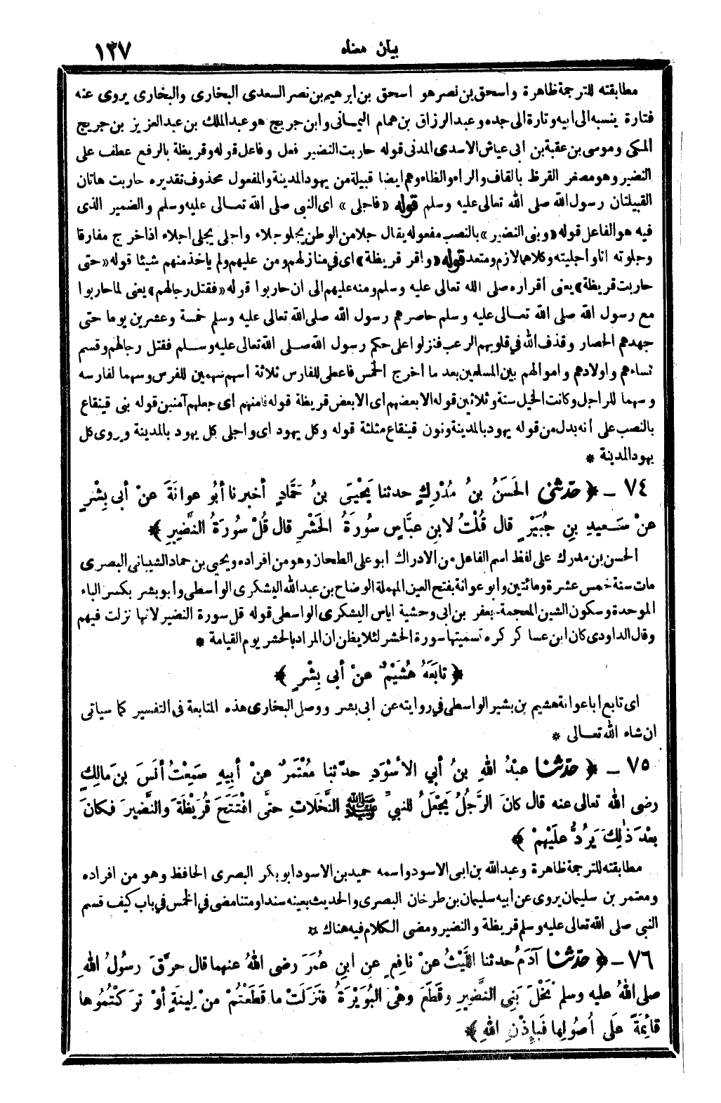 4029 - حدَّثني الحَسَنُ بنُ مُدْرِكٍ حدَّثنا يَحْيَى بنُ حَمَّادٍ أخبرَنَا أبُو عَوَانَةَ عنْ أبِي بِشْرٍ عنْ سَعِيدِ بنِ جُبَيْرٍ قَالَ قُلْتُ لابْنِ عَبَّاسٍ سُورَةُ الحَشْرِ قَالَ قُلْ سُورَةُ النَّضِيرِ. .