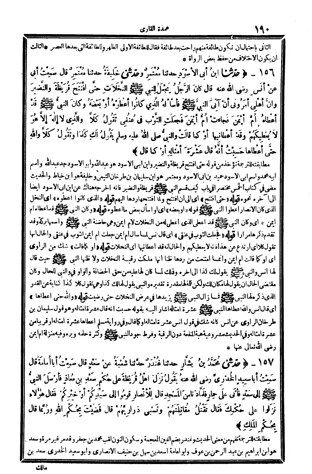 4120 - حدَّثنا ابنُ أبِي الأسْوَدِ حدَّثنَا مُعْتَمِرٌ وحدَّثنِي خَلِيفَةُ حدَّثَنَا مُعْتَمِرٌ قَالَ سَمِعْتُ أبِي عنْ أنَسٍ رَضِي الله تَعَالَى عنهُ قَالَ كانَ الرَّجُلُ يَجْعَلُ لِلنَّبِيِّ صلى الله عَلَيْهِ وَسلم النَّخَلاَتِ حتَّى افْتَتَحَ قُرَيْظَةَ والنَّضِيرَ وأنَّ أهْلِي أمَرُونِي أنْ آتِي النَّبِيَّ صلى الله عَلَيْهِ وَسلم فأسْألْهُ الَّذِي كانُوا أعْطُوهُ أوْ بَعْضَهُ وكانَ النَّبِيُّ صلى الله عَلَيْهِ وَسلم قَدْ أعْطَاهُ أُمَّ أيْمَنَ فَجَاءَتْ أُمُّ أيْمَنَ فَجَعَلَتِ الثَّوْبَ فِي عُنُقِي تَقُولُ كَلاَّ والَّذِي لاَ إلاهَ إلاَّ هُوَ لاَ يُعْطِيكَهُمْ وقَدْ أعْطَانِيهَا أوْ كَمَا قالَتْ والنَّبِيُّ صلى الله عَلَيْهِ وَسلم يَقُولُ لَكِ كذَا وتَقُولُ كَلاَّ وَالله حتَّى أعْطَاهَا حَسِبْتُ أنَّهُ قَالَ عَشْرَةَ أمْثَالِهِ أوْ كَمَا قَالَ.