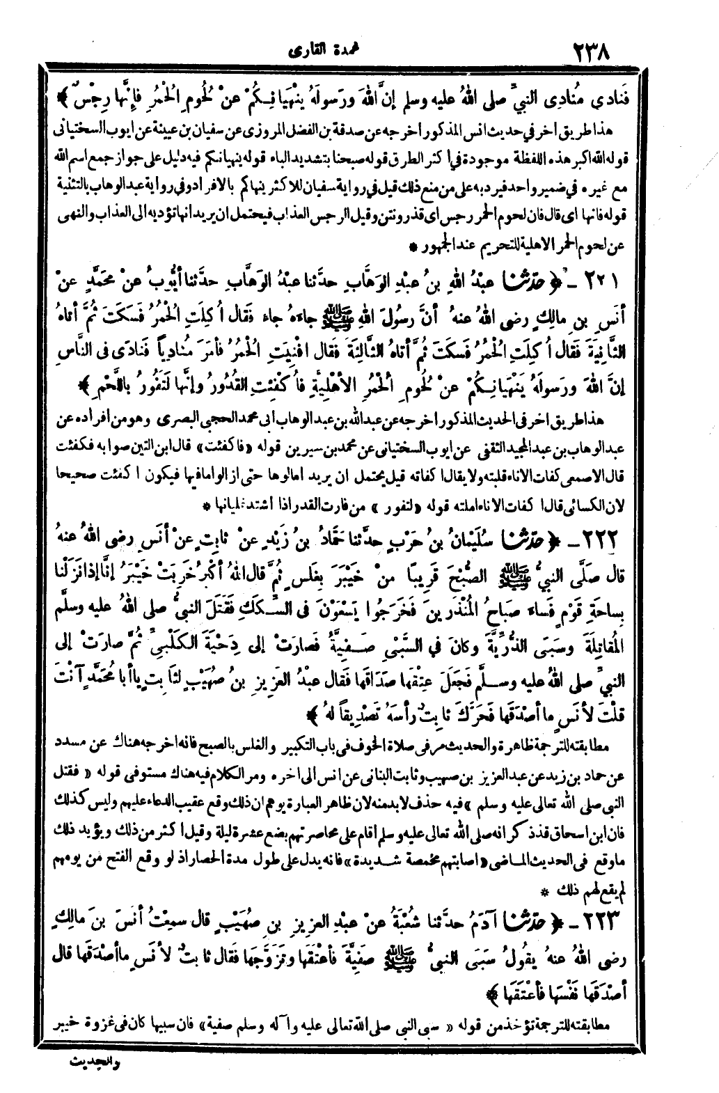 4200 - حدَّثنا سُلَيْمَانُ بنُ حَرْبٍ حدَّثَنا حَمَّادُ بنُ زَيْدٍ عنْ ثَابِتٍ عنْ أنَسٍ رَضِي الله تَعَالَى عنهُ قَالَ صَلَّى النَّبِيُّ صلى الله عَلَيْهِ وَسلم الصُّبْحَ قَرِيبَاً مِنْ خَيْبَرَ بِغَلسٍ ثُمَّ قالَ الله أكْبَرُ خَرِبَتْ خَيْبَرُ إنَّا إذَا نَزَلْنَا بِسَاحَةِ قَوْمٍ فَساءَ صَبَاحُ الْمُنْذِرِينَ فخَرَجُوا يَسْعَوْنَ فِي السِّكَكِ فقَتَلَ النَّبِيُّ صلى الله عَلَيْهِ وَسلم المُقَاتِلَةَ وسَبَى الذُّرِّيَّةَ وكانَ فِي السَّبْيِ صَفِيَّةُ فَصارَتْ إلَى دِحْيَةَ الكَلْبِيِّ ثُمَّ صارَتْ إِلَى النَّبِيِّ صلى الله عَلَيْهِ وَسلم فجَعَلَ عِتْقَهَا صَدَاقَهَا فَقال عَبْدُ العَزِيزِ بنُ صُهَيْبٍ لِثَابِتٍ يَا أبَا مُحَمَّدٍ آنْتَ قُلْتَ لأِنَسٍ مَا أصْدَقَهَا فَحَرَّكَ ثابِتٌ رَأسَهُ تَصْدِيقَاً لَهُ. .