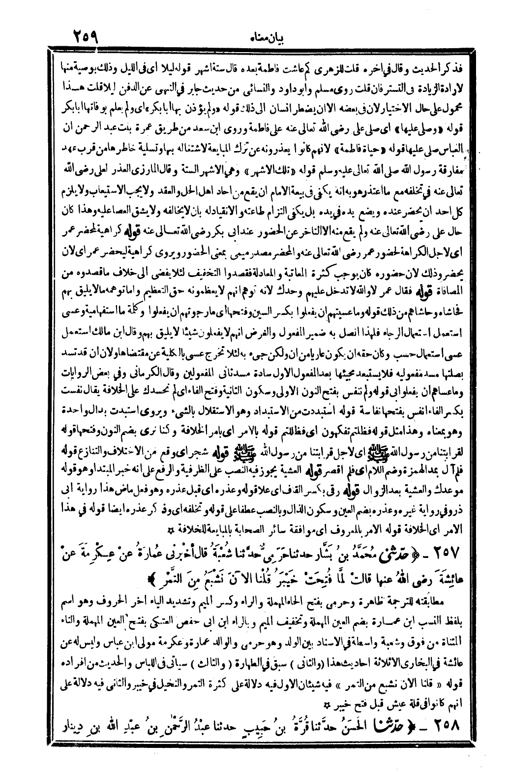 فَذكر الحَدِيث وَقَالَ فِي آخِره: قلت لِلزهْرِيِّ: كم عاشت فَاطِمَة بعده؟ قَالَ: سِتَّة أشهر. قَوْله: (لَيْلًا) أَي: فِي اللَّيْل، وَذَلِكَ بِوَصِيَّة مِنْهَا لإِرَادَة الزِّيَادَة فِي التستر. فَإِن قلت: روى مُسلم وَأَبُو دَاوُد وَالنَّسَائِيّ من حَدِيث جَابر فِي النَّهْي عَن الدّفن لَيْلًا. قلت: هَذَا مَحْمُول على حَال الِاخْتِيَار لِأَن فِي بعضه: إلاَّ أَن يضْطَر إِنْسَان إِلَى ذَلِك. قَوْله: (وَلم يُؤذن بهَا أَبَا بكر) أَي: وَلم يعلم بوفاتها أَبَا بكر. قَوْله: (وَصلى عَلَيْهَا) أَي: صلى عَليّ، رَضِي الله تَعَالَى عَنهُ، على فَاطِمَة، وروى ابْن سعد من طَرِيق عمْرَة بنت عبد الرَّحْمَن: أَن الْعَبَّاس صلى عَلَيْهَا. قَوْله: (حَيَاة فَاطِمَة) ، لأَنهم كَانُوا يعذرونه عَن ترك الْمُبَايعَة لاشتغاله بهَا وتسلية خاطرها من قرب عهد مُفَارقَة رَسُول الله، صلى الله عَلَيْهِ وَسلم. قَوْله: (تِلْكَ الْأَشْهر) ، وَهِي الْأَشْهر السِّتَّة، وَقَالَ المارزي: الْعذر لعَلي، رَضِي الله تَعَالَى عَنهُ، فِي تخلفه مَعَ مَا اعتذر هُوَ بِهِ أَنه يَكْفِي فِي بيعَة الإِمَام أَن يَقع من آحَاد أهل الْحل وَالْعقد، وَلَا يجب الِاسْتِيعَاب، وَلَا يلْزم كل أحد أَن يحضر عندده وَيَضَع يَده فِي يَده، بل يَكْفِي الْتِزَام طَاعَته والانقياد لَهُ بِأَن لَا يُخَالِفهُ وَلَا يشق الْعَصَا عَلَيْهِ، وَهَذَا كَانَ حَال عَليّ، رَضِي الله تَعَالَى عَنهُ، وَلم يَقع مِنْهُ إلاَّ التَّأَخُّر عَن الْحُضُور عِنْد أبي بكر، رَضِي الله تَعَالَى عَنهُ. قَوْله: (كَرَاهِيَة لمحضر عمر) أَي: لأجل الْكَرَاهَة لحضور عمر، رَضِي الله تَعَالَى عَنهُ، و: الْمحْضر، مصدر ميمي بِمَعْنى الْحُضُور، ويروى: كَرَاهِيَة ليحضر عمر، أَي: لِأَن يحضر، وَذَلِكَ لِأَن حُضُوره كَانَ يُوجب كَثْرَة المعاتبة والمعادلة، فقصدوا التَّخْفِيف لِئَلَّا يُفْضِي إِلَى خلاف مَا قصدوه من المصافاة. قَوْله: (فَقَالَ عمر: لَا وَالله لَا تدخل عَلَيْهِم وَحدك) لِأَنَّهُ توهم أَنهم لَا يعظمونه حق التَّعْظِيم، وَأما توهمه مَا لَا يَلِيق بهم فحاشاه وحاشاهم من ذَلِك. قَوْله: (وَمَا عسيتهم أَن يَفْعَلُوا؟) بِكَسْر السِّين وَفتحهَا أَي: مَا رجوتهم أَن يَفْعَلُوا، وَكلمَة: مَا، استفهامية، وَعَسَى اسْتعْمل اسْتِعْمَال الرَّجَاء، فَلهَذَا اتَّصل بِهِ ضمير الْمَفْعُول، وَالْغَرَض أَنهم لَا يَفْعَلُونَ شَيْئا لَا يَلِيق بهم. وَقَالَ ابْن مَالك: اسْتعْمل عَسى اسْتِعْمَال حسب وَكَانَ حَقه أَن يكون عَارِيا من أَن وَلَكِن جِيءَ بِهِ لِئَلَّا تخرج عَسى بِالْكُلِّيَّةِ عَن مقتضاها، وَلِأَن: أَن، قد تسد بصلتها مسد مفعوليه فَلَا يستبعد مجيئها بعد الْمَفْعُول الأول سادة مسد ثَانِي المفعولين. وَقَالَ الْكرْمَانِي: وَفِي بعض الرِّوَايَات: وَمَا عساهم أَن يَفْعَلُوا بِي؟ قَوْله: (وَلم ننفس) بِفَتْح النُّون الأولى وَسُكُون الثَّانِيَة وَفتح الْفَاء، أَي: لم نحسدك على الْخلَافَة، يُقَال: نفست، بِكَسْر الْفَاء أنفس بِفَتْحِهَا نفاسة. قَوْله: (استبددت) من الاستبداد وَهُوَ الِاسْتِقْلَال بالشَّيْء، ويروى: استبدت، بدال وَاحِدَة وَهُوَ بِمَعْنَاهُ وَهَذَا مثل قَوْله: فظلتم تفكهون، أَي: فظللتم. قَوْله: (بِالْأَمر) أَي: بِأَمْر الْخلَافَة (وَكُنَّا نرى) بِضَم النُّون وَفتحهَا. قَوْله: (لقرابتنا من رَسُول الله، صلى الله عَلَيْهِ وَسلم) ، أَي: لأجل قرابتنا من رَسُول الله، صلى الله عَلَيْهِ وَسلم. قَوْله: (شجر) أَي: وَقع من الِاخْتِلَاف والتنازع. قَوْله: (فَلم آل) بِمد الْهمزَة وَضم اللَّام، أَي: فَلم أقصر. قَوْله: (العشية) يجوز فِيهِ النصب على الظَّرْفِيَّة، وَالرَّفْع على أَنه خبر الْمُبْتَدَأ، وَهُوَ قَوْله: (موعدك) . والعشية: بعد الزَّوَال. قَوْله: (رقي) بِكَسْر الْقَاف أَي: علا. قَوْله: (وعذره) أَي: قبل عذره، وَهُوَ فعل مَاض، هَذَا رِوَايَة أبي ذَر، وَفِي رِوَ