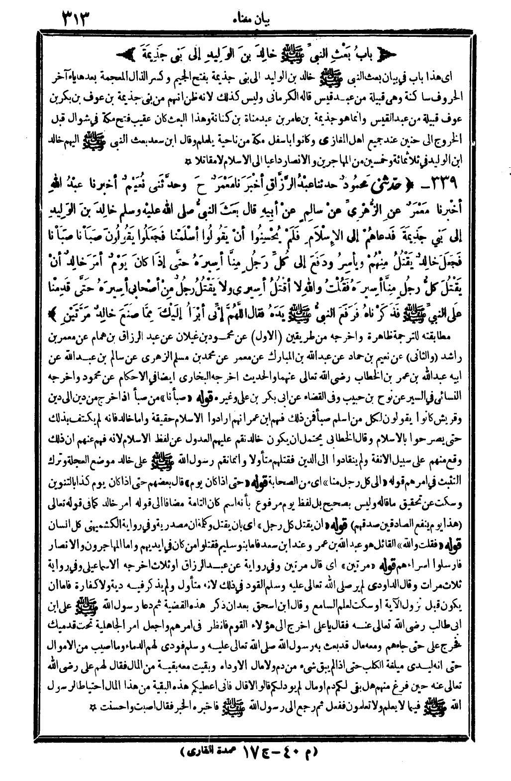 أَي: هَذَا بَاب فِي بَيَان بعث النَّبِي صلى الله عَلَيْهِ وَسلم خَالِد بن الْوَلِيد إِلَى بني جذيمة، بِفَتْح الْجِيم وَكسر الذَّال الْمُعْجَمَة بعْدهَا يَاء آخر الْحُرُوف سَاكِنة. وَهِي قَبيلَة من عبد قيس، قَالَه الْكرْمَانِي، وَلَيْسَ كَذَلِك، لِأَنَّهُ ظن أَنهم من بني جذيمة بن عَوْف بن بكر بن عَوْف قَبيلَة من عبد الْقَيْس، وَإِنَّمَا هُوَ جذيمة بن عَامر بن عبد مَنَاة بن كنَانَة، وَهَذَا الْبَعْث كَانَ عقيب فتح مَكَّة فِي شَوَّال قبل الْخُرُوج إِلَى حنين عِنْد جَمِيع أهل الْمَغَازِي، وَكَانُوا بِأَسْفَل مَكَّة من نَاحيَة يَلَمْلَم، وَقَالَ ابْن سعد: بعث النَّبِي صلى الله عَلَيْهِ وَسلم إِلَيْهِم خَالِد ابْن الْوَلِيد فِي ثَلَاثمِائَة وَخمسين من الْمُهَاجِرين وَالْأَنْصَار دَاعيا إِلَى الْإِسْلَام لَا مُقَاتِلًا.