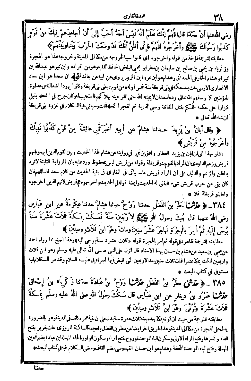 مطابقته للتَّرْجَمَة من حَيْثُ إِن كَونه بِمَكَّة بعد مبعثه ثَلَاث عشرَة سنة يدل على أَن بَقِيَّة عمره كَانَت فِي الْمَدِينَة، وَهُوَ بِالضَّرُورَةِ يدل على الْهِجْرَة من مَكَّة إِلَى الْمَدِينَة، وَهَذَا طَرِيق آخر أَيْضا عَن مطر بن الْفضل، بِالْمُعْجَمَةِ الساكنة: الْمروزِي، مَاتَ بفربر، بِفَتْح الْفَاء وَكسرهَا وَفتح الرَّاء الأولى وَسُكُون الْبَاء الْمُوَحدَة، وروح، بِفَتْح الرَّاء وَسُكُون الْوَاو وَبِالْحَاءِ الْمُهْملَة: ابْن عبَادَة، بِضَم الْعين الْمُهْملَة وَفتح الْبَاء الْمُوَحدَة المخففة، وَهِشَام هُوَ ابْن حسان القهدوسي، بِضَم الْقَاف، وَمضى الْكَلَام فِيهِ فِي كتاب المبعث.