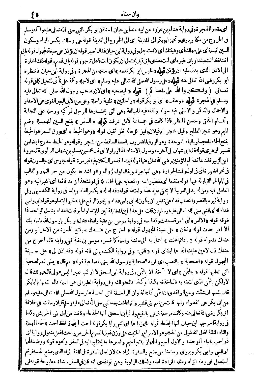 أَي: مُقَدرا الْهِجْرَة، وَفِي رِوَايَة هِشَام بن عُرْوَة عَن أَبِيه عِنْد ابْن حبَان: اسْتَأْذن أَبُو بكر النَّبِي صلى الله عَلَيْهِ وَسلم، فِي الْخُرُوج من مَكَّة، ويروى: تجهز أَبُو بكر إِلَى الْمَدِينَة أَي إِلَى الْخُرُوج إِلَى الْمَدِينَة. قَوْله: (على رسلك) بِكَسْر الرَّاء وَسُكُون السِّين الْمُهْملَة أَي: على مهلك أَي: وهينتك أَي: لَا تستعجل، وَفِي رِوَايَة ابْن حبَان: فَقَالَ اصبر. قَوْله: (أَن يُؤذن) على صِيغَة الْمَجْهُول. قَوْله: (بِأبي أَنْت) لفظ: أَنْت، مُبْتَدأ و: بِأبي خَبره أَي: أَنْت مفدى بِأبي قيل: يحْتَمل أَن يكون: أَنْت، فَاعل ترجو. وَقَوله: بِأبي قسم. وَقَوله ذَلِك إِشَارَة إِلَى الْإِذْن الَّذِي يدل عَلَيْهِ أَن يُؤذن. قَوْله: (فحبس أَبُو بكر نَفسه) أَي: منعهَا من الْهِجْرَة، وَفِي رِوَايَة ابْن حبَان: فانتظره أَبُو بكر، رَضِي الله تَعَالَى عَنهُ. قَوْله: (على رَسُول الله، صلى الله عَلَيْهِ وَسلم) أَي: لأَجله، وَكلمَة: على، تَأتي للتَّعْلِيل كَمَا فِي قَوْله تَعَالَى: {ولتكبروا الله على مَا هدَاكُمْ} (الْبَقَرَة: 185) قَوْله (ليصحبه) أَي لَا يصحب رَسُول الله صلى الله عَلَيْهِ وَسلم فِي الْهِجْرَة قَوْله (وعلف) أَي أَبُو بكر قَوْله. تَثْنِيَة رَاحِلَة وَهِي من الْإِبِل الْبَعِير الْقوي على الْأَسْفَار والأحمال، وَالذكر وَالْأُنْثَى فِيهِ سَوَاء، وَالْهَاء فِيهِ للْمُبَالَغَة، وَهِي الَّتِي يختارها الرجل لمركبه ورحله على النجابة وَتَمام الْخلق وَحسن المنظر، فَإِذا كَانَت فِي جمَاعَة الْإِبِل عرفت. قَوْله: (السمر) ، بِفَتْح السِّين الْمُهْملَة وَضم الْمِيم: وَهُوَ شجر الطلح، وَقيل: شجر أم غيلَان، وَقيل: كل مَا لَهُ ظلّ ثقيل. قَوْله: (وَهُوَ الْخبط) أَي: ورق السمر هُوَ الْخبط، بِفَتْح الْخَاء الْمُعْجَمَة وبالباء الْمُوَحدَة: وَهُوَ الْوَرق الْمَضْرُوب بالعصا السَّاقِط من الشّجر. وَقَوله: وَهُوَ الْخبط، مدرج أَيْضا من تَفْسِير الزُّهْرِيّ.
