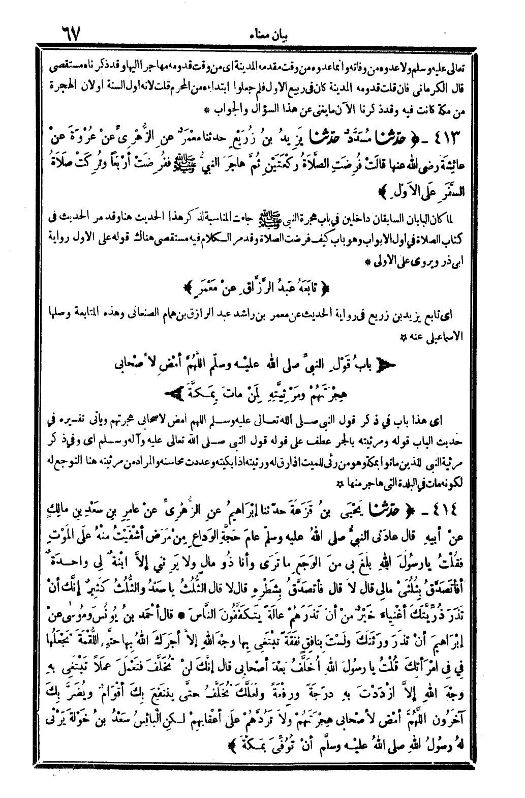 49 - (بابُ قَوْلِ النَّبِيِّ صلى الله عَلَيْهِ وَسلم اللَّهُمَّ أمْضِ لأصْحَابِي هِجْرَتَهُمْ ومَرْثِيَّتِهِ لِمَنْ ماتَ بِمَكَّةَ)