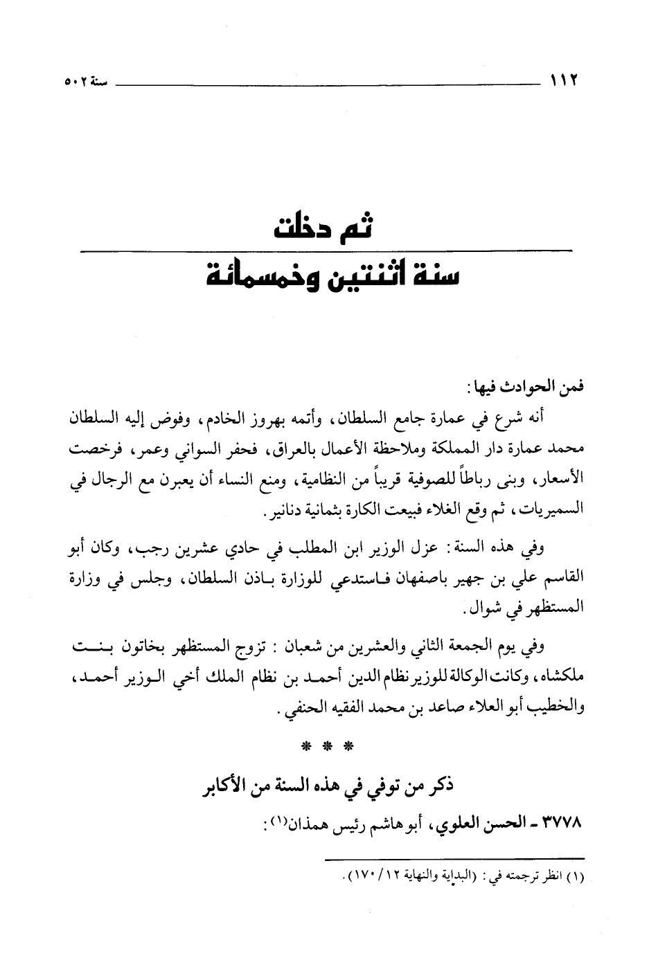 ثم دخلت سنة اثنتين وخمسمائة