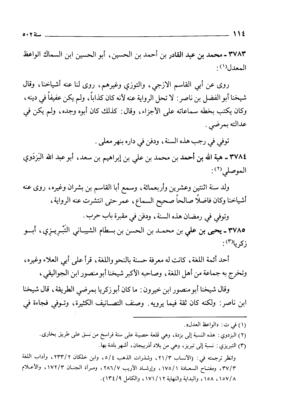 3785- يحيى بن علي بن محمد بن الحسن بن بسطام الشيباني التبريزي، أبو زكريا