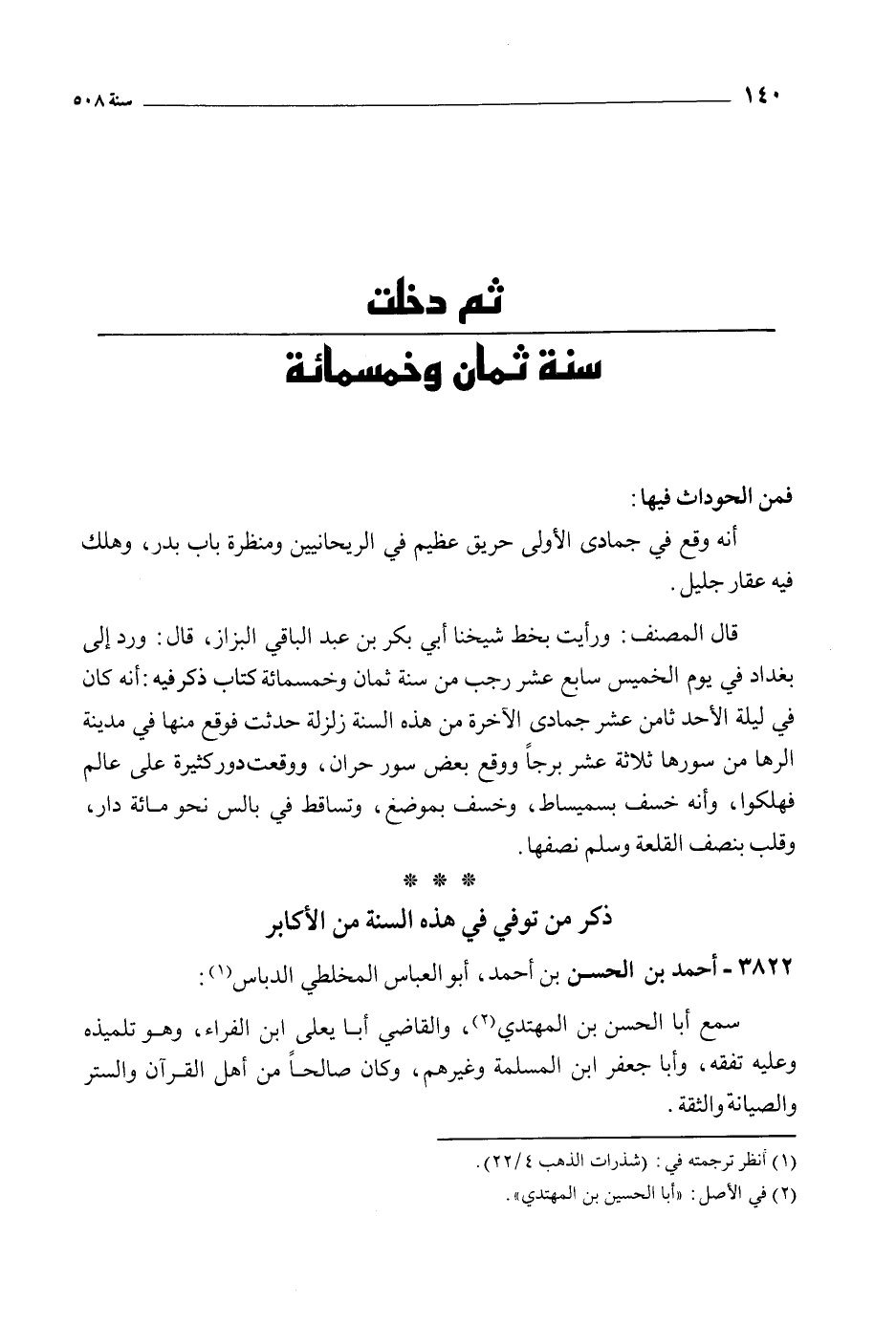 ثم دخلت سنة ثمان وخمسمائة