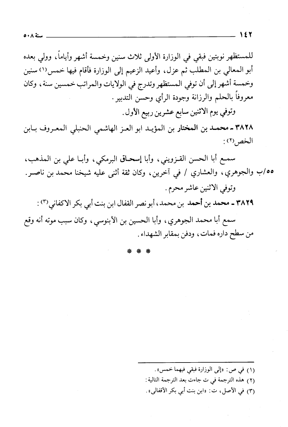 3828- محمد بن المختار بن المؤيد أبو العز الهاشمي الحنبلي المعروف بابن الخص
