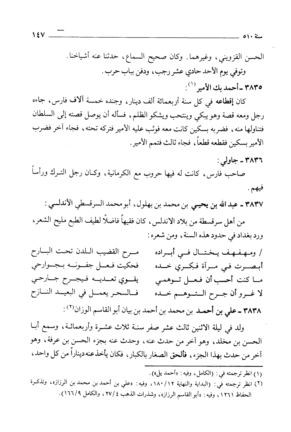 [2] انظر ترجمته في: (البداية والنهاية 12/ 180، وفيه: «علي بن أحمد بن محمد بن الرزاز» ، وتذكرة الحفاظ 1261، وفيه: «أبو القاسم الرزاز» ، وشذرات الذهب 4/ 27، والكامل 9/ 166) .