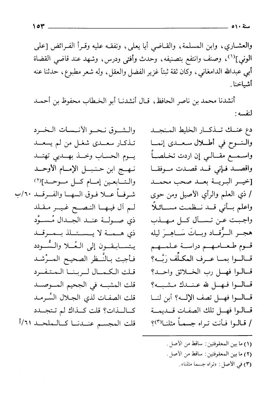 أنشدنا محمد بن ناصر الحافظ، قَالَ أنشدنا أبو الخطاب محفوظ بن أحمد لنفسه: