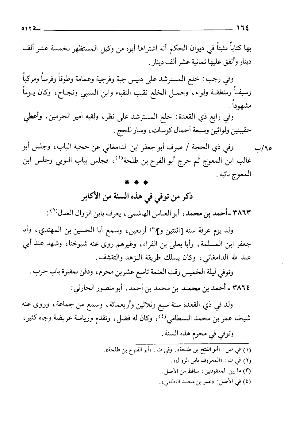 65/ ب وفي ذي الحجة/ صرف أبو جعفر ابن الدامغاني عن حجبة الباب، وجلس أبو غالب ابن المعوج ثم خرج أبو الفرج بن طلحة [1] ، فجلس بباب النوبي وجلس ابن المعوج نائبه.