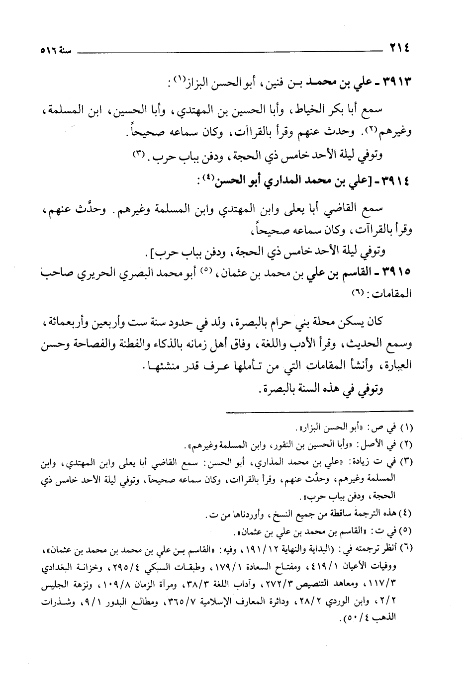 3915- القاسم بن علي بن محمد بن عثمان، [5] أبو محمد البصري الحريري صاحب المقامات: