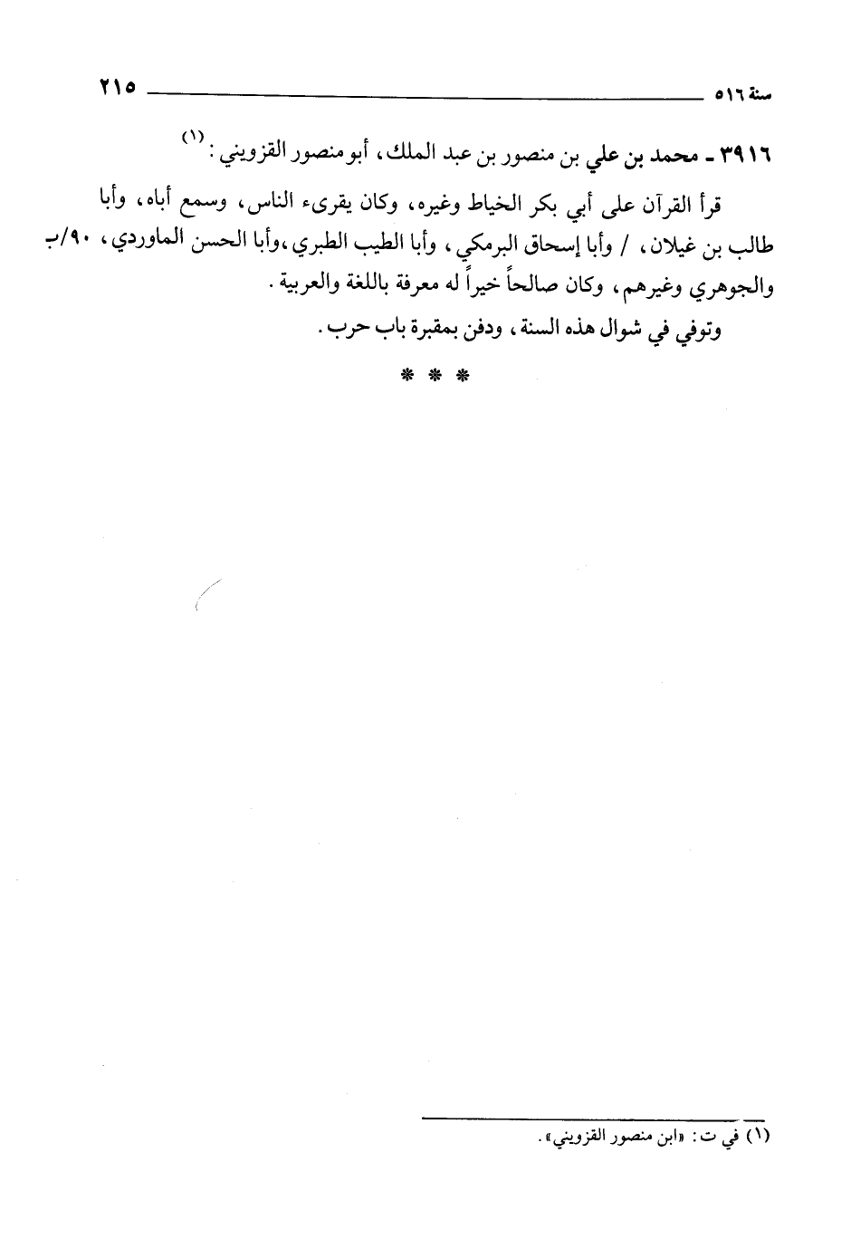 3916- محمد بن علي بن منصور بن عبد الملك، أبو منصور القزويني: