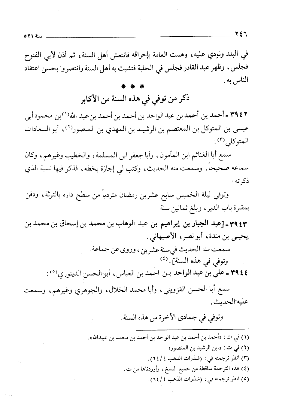 3942- أحمد بن أحمد بن عبد الواحد بن أحمد بن أحمد بن عبد الله [1] بن محمود أبي عيسى بن المتوكل بن المعتصم بْن الرشيد بْن المهدي بْن المَنْصُور [2] ، أبو السعادات المتوكلي