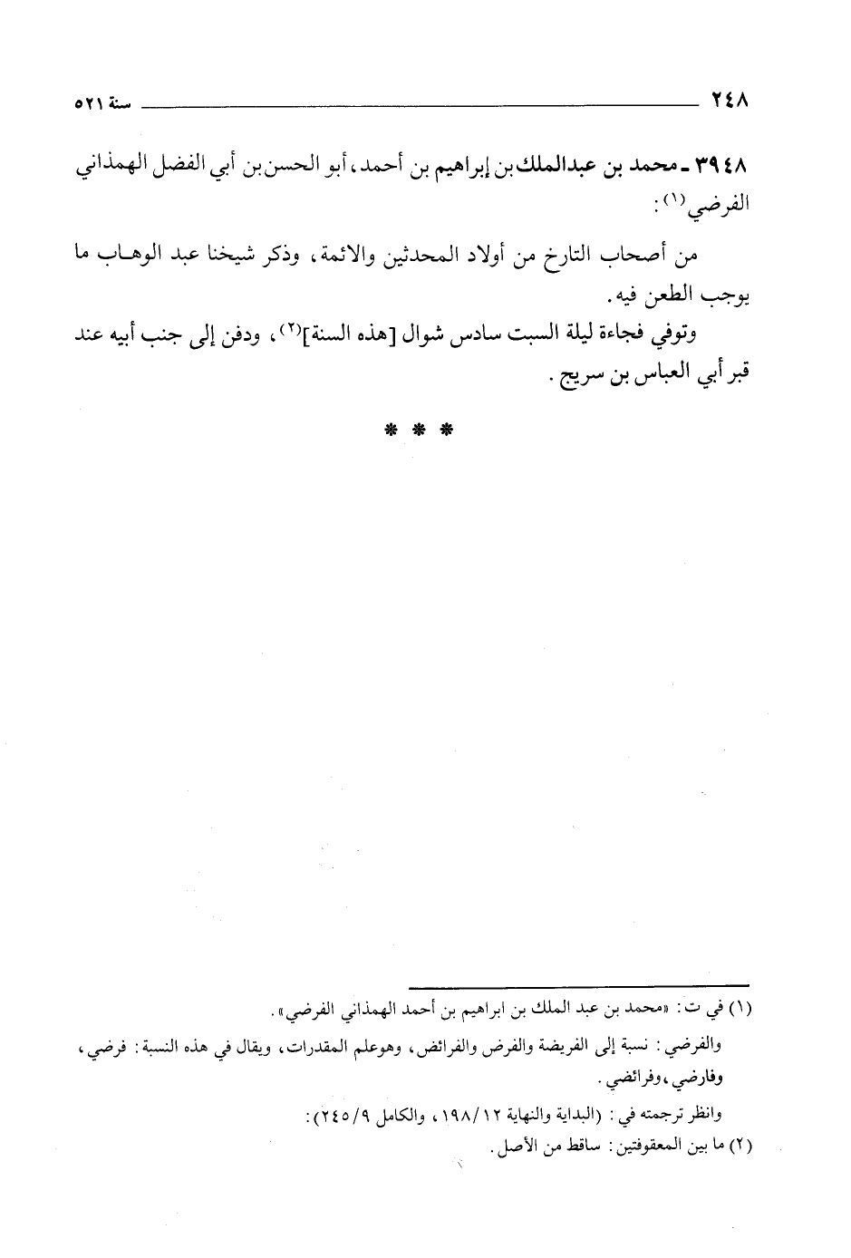 3948- محمد بن عبد الملك بن إبراهيم بن أَحْمَد، أَبُو الحسن بن أبي الفضل الهمذاني الفرضي