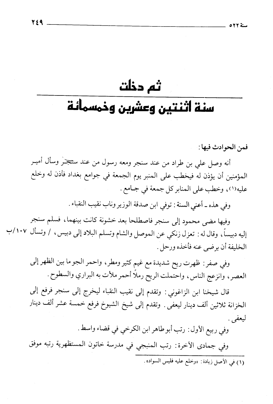 ثم دخلت سنة اثنتين وعشرين وخمسمائة
