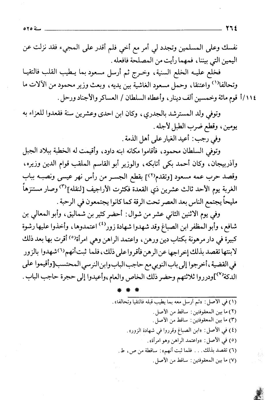 وفي يوم الاثنين الثاني عشر من شوال: أحضر كثير بن شماليق، وأبو المعالي بن شافع، وأبو المظفر ابن الصباغ وقد شهدوا شهادة زور [4] اعتمدوها، وأخذوا عليها رشوة كبيرة في دار مرهونة بكتاب دين ورهن، واعتمد الراهن وهي امرأة [5] أقرت بها بعد ذلك لابنتها تقصد بذلك إخراجها عن الرهن فأقروا على ذلك، فلما ثبت أنهم [6] شهدوا بالزور في القضية، أخرجوا إلى باب النوبي مع حاجب الباب وابن النرسي المحتسب [وأقيموا على الدكة [7]] ودرروا ثلاثتهم وحضر ذلك الخاص والعام، وأعيدوا إلى حجرة حاجب الباب.