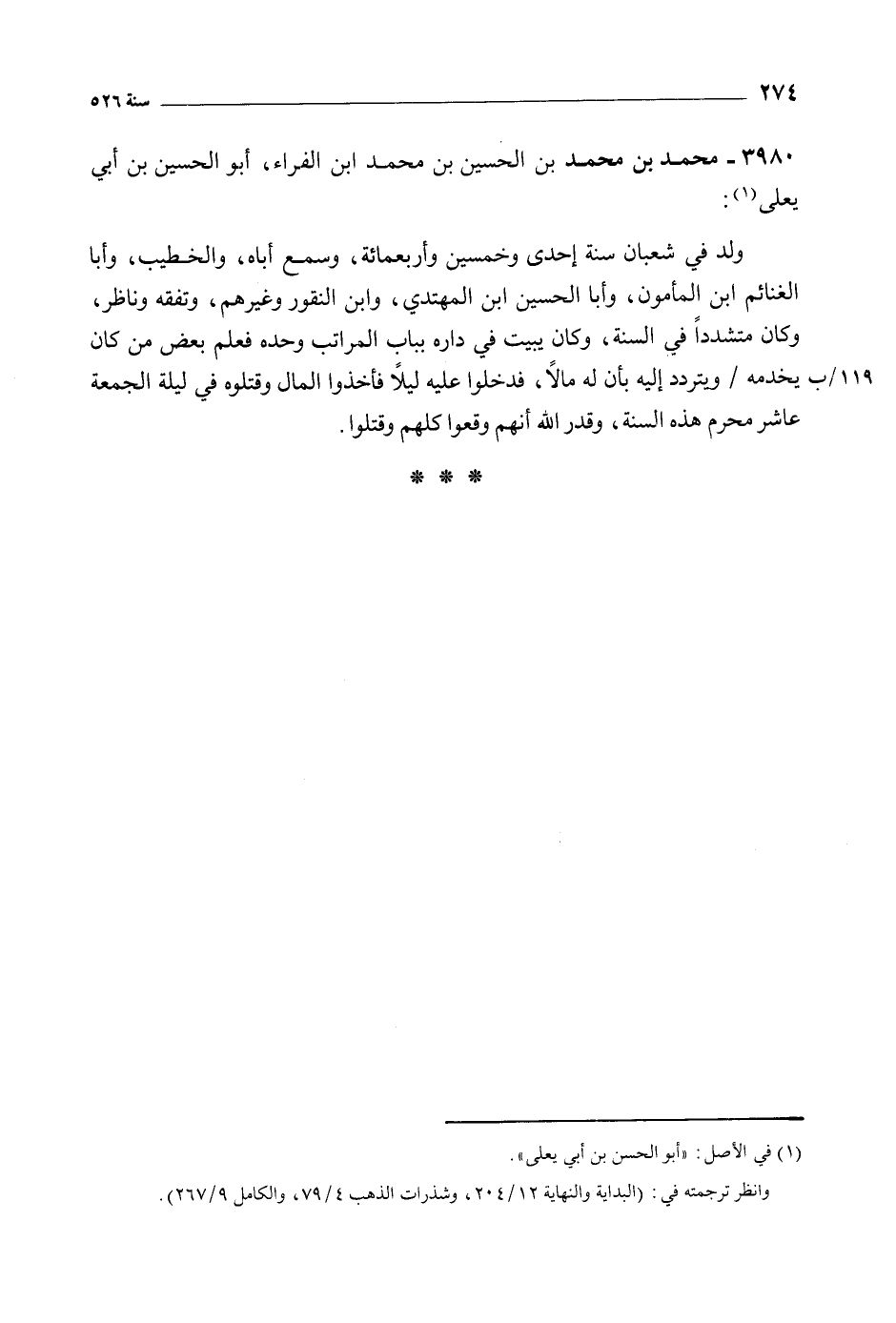 3980- محمد بن محمد بن الحسين بن محمد ابن الفراء، أبو الحسين بن أبي يعلى