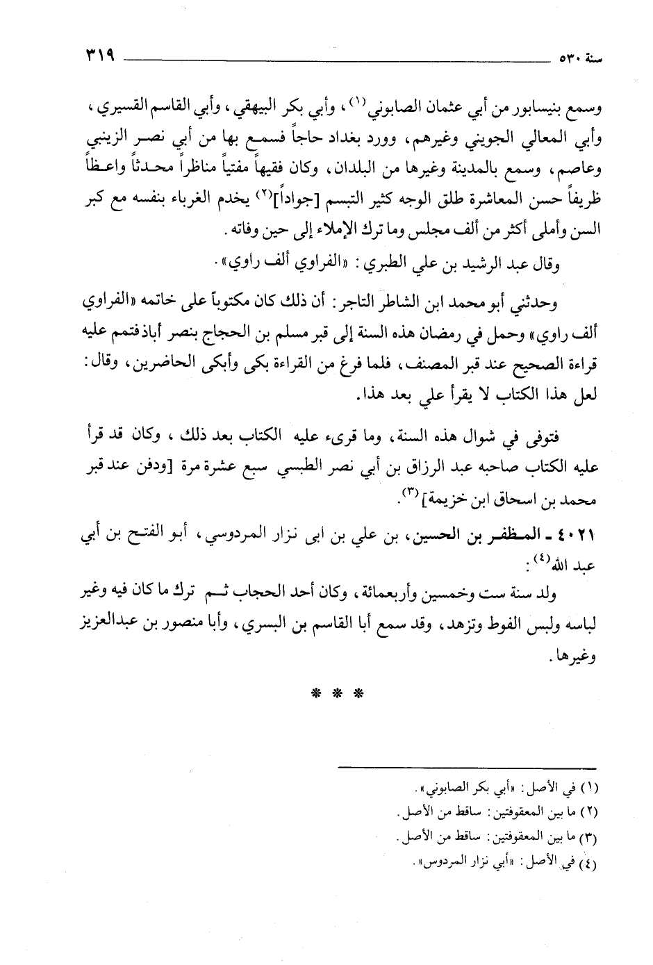 وقال عبد الرشيد بن علي الطبري: «الفراوي ألف راوي» .