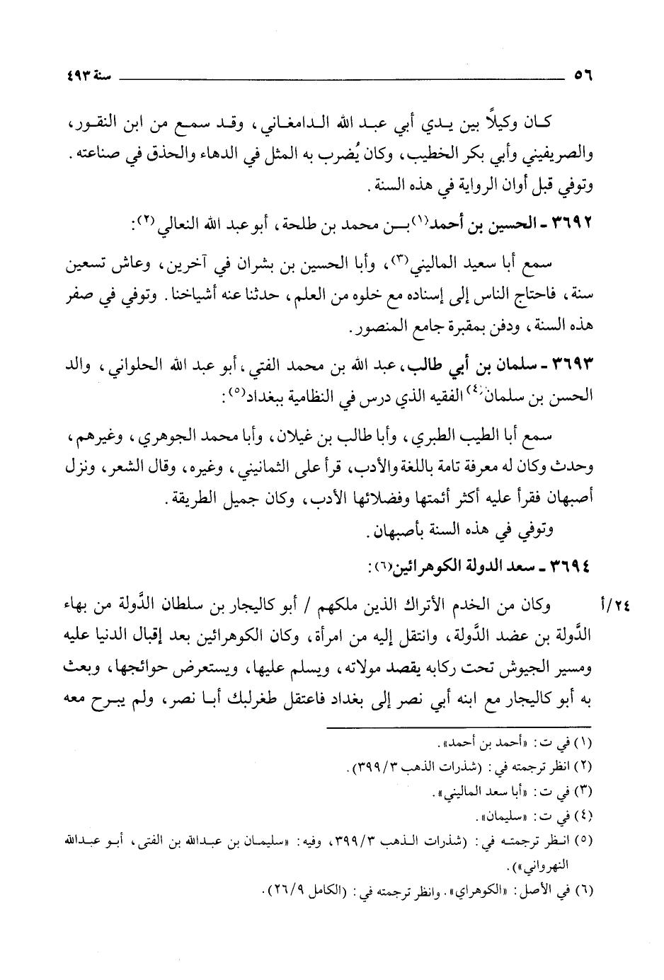 3693- سلمان بن أبي طالب، عبد الله بن محمد الفتى، أبو عبد الله الحلواني، والد الحسن بن سلمان [4] الفقيه الذي درس في النظامية ببغداد