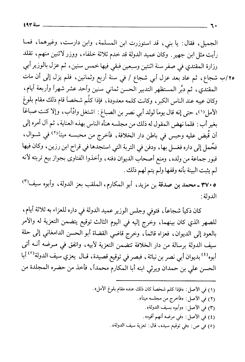 3705- محمد بن صدقة بن مزيد، أبو المكارم، الملقب بعز الدولة، وأبوه سيف [3] الدولة: