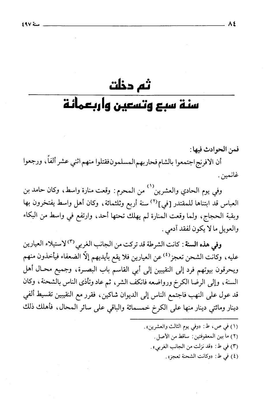 ثم دخلت سنة سبع وتسعين واربعمائة
