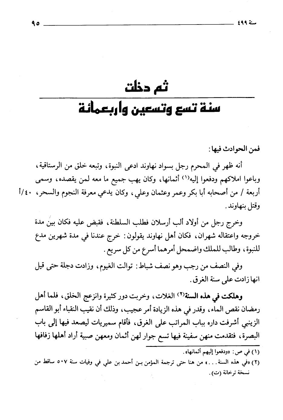 ثم دخلت سنة تسع وتسعين واربعمائة