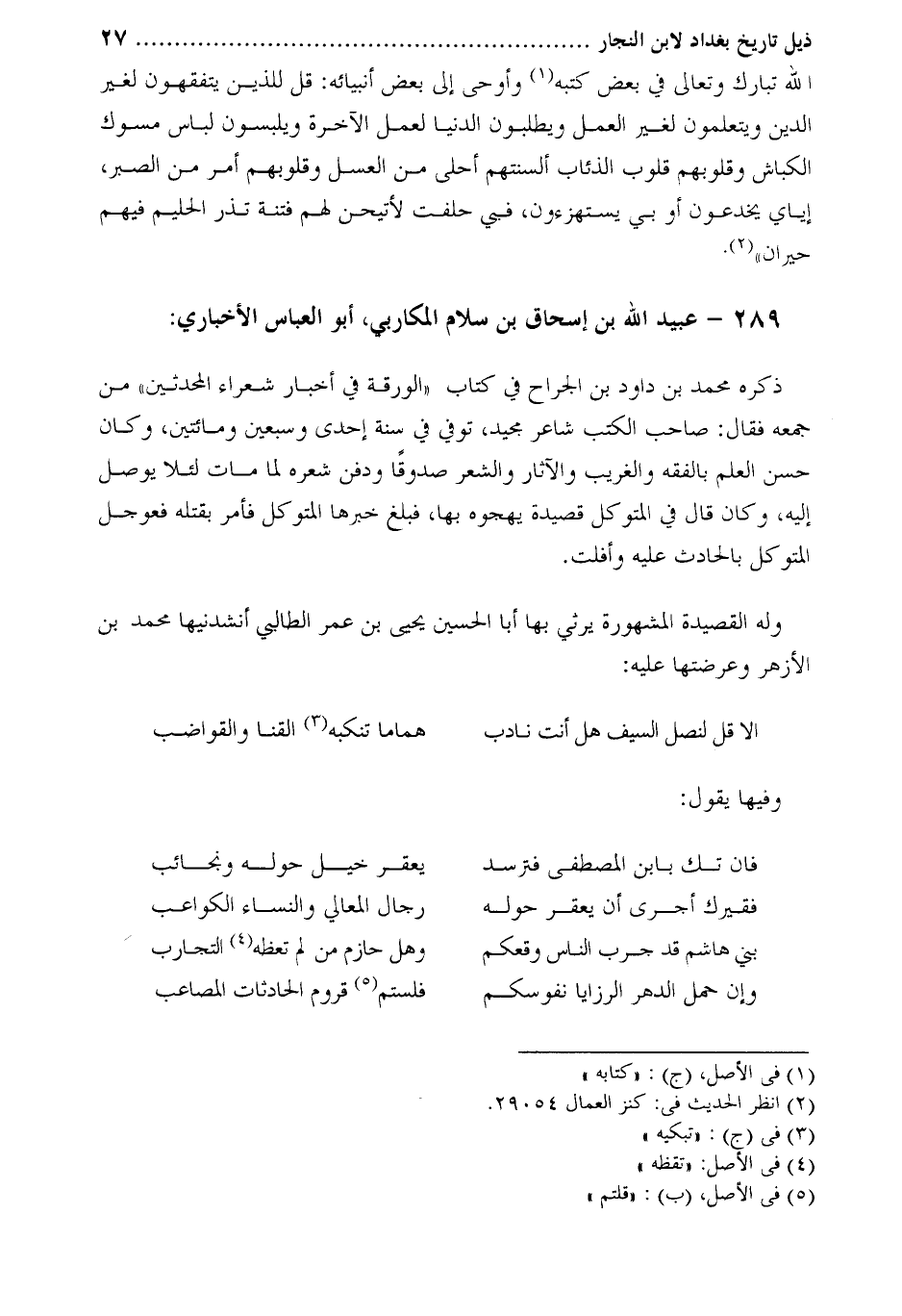 289- عُبَيْد اللَّه بْن إسحاق بْن سلام المكاربي، أَبُو العباس الأخباري: