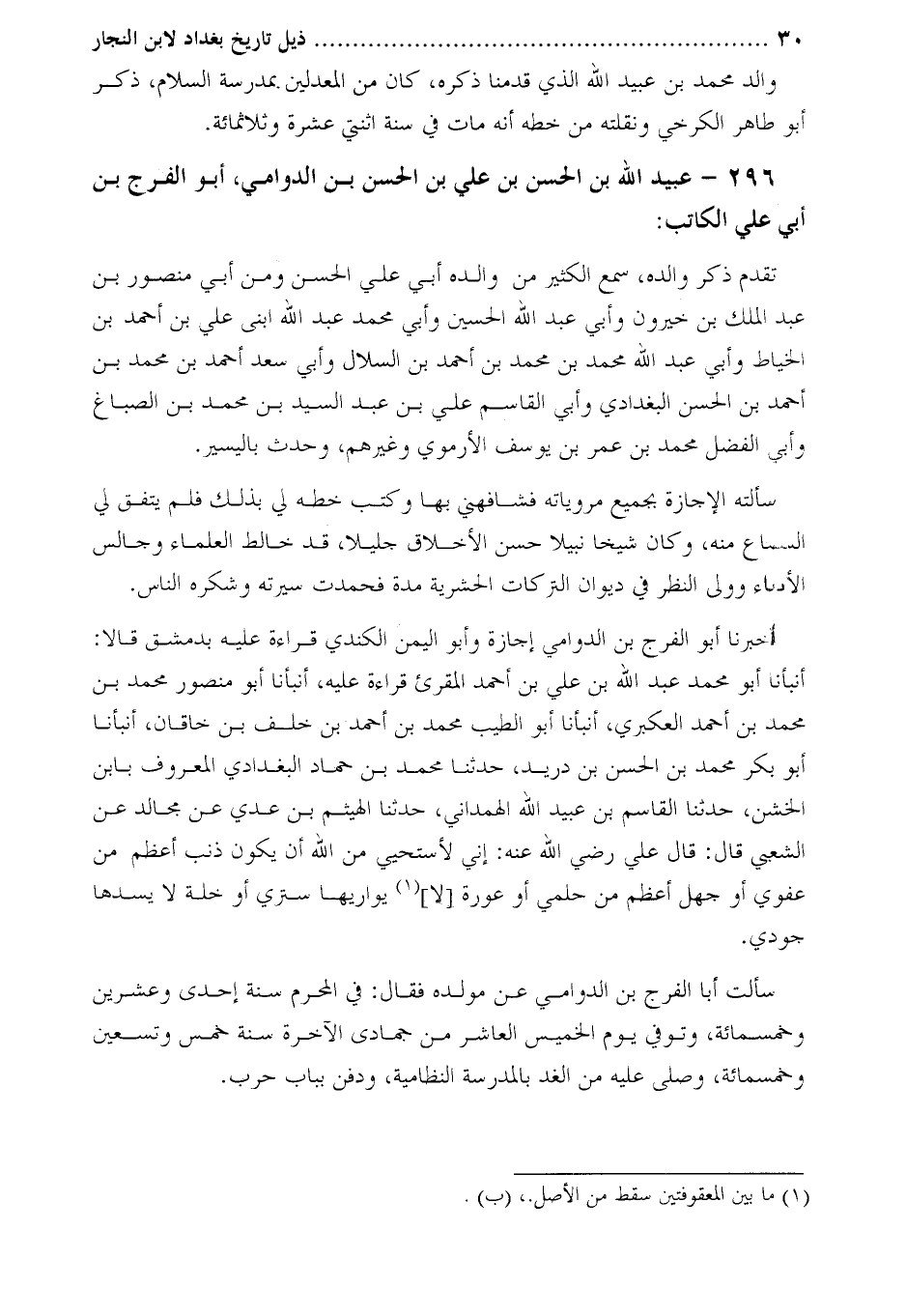 296- عُبَيْد اللَّه بْن الْحَسَن بْن عَلِيّ بْن الْحَسَن بْن الدوامي، أَبُو الفرج بْن أَبِي عَلِيّ الكاتب: